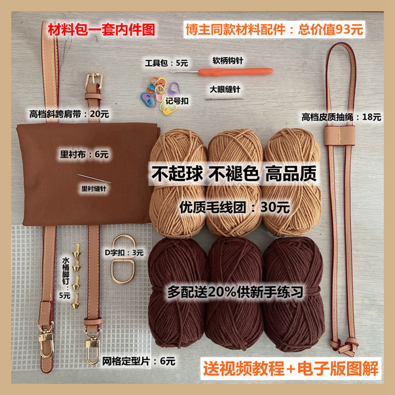 小红书同款老花包材料包配件diy毛线手工编织包斜跨包钩织水桶包