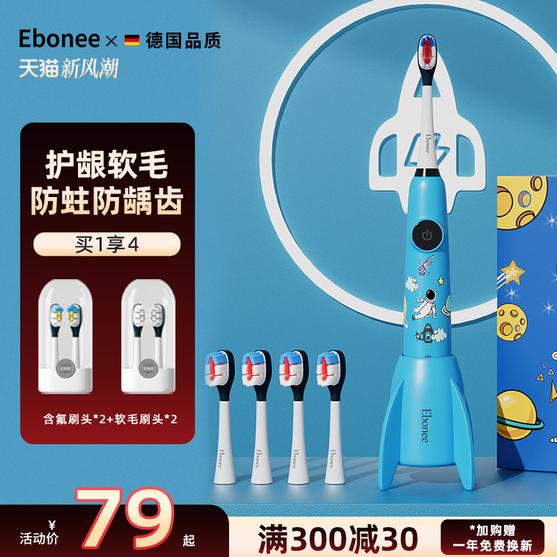 天猫艾博尼旗舰店,艾博尼儿童电动牙刷3-12岁防龋齿,软毛不伤牙 全身水洗 礼盒包装