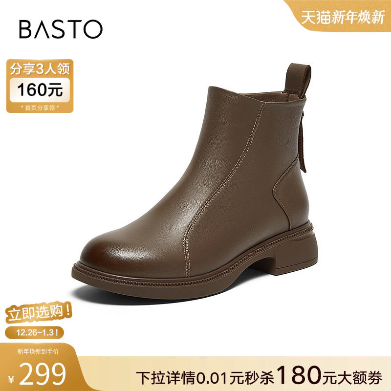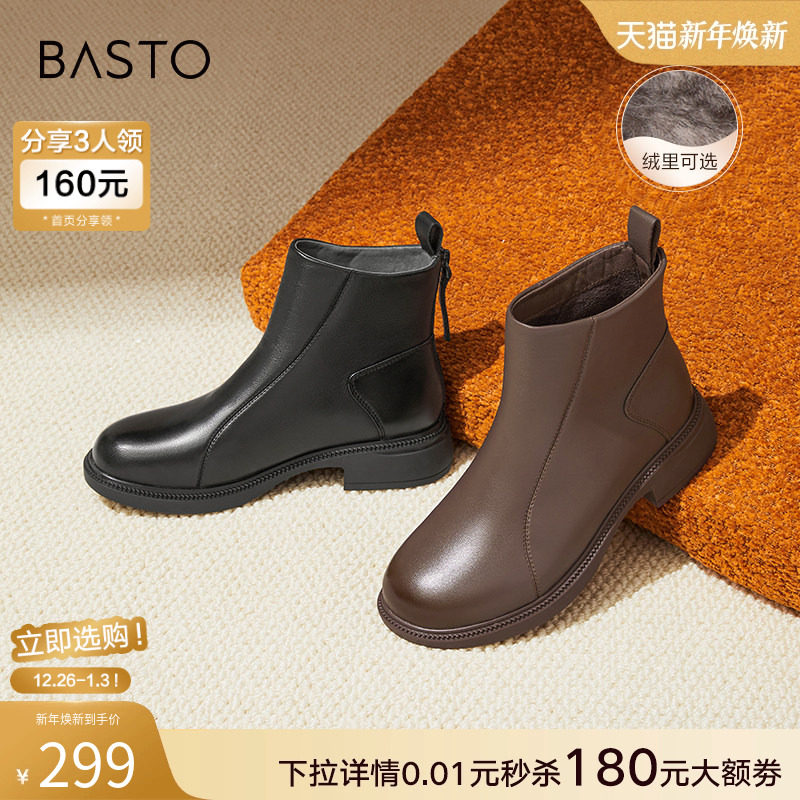 天猫百思图官方旗舰店,百思图冬商场新款加绒美拉德羊皮靴粗跟女马丁靴短靴G2176DD4,时尚潮流简约舒适