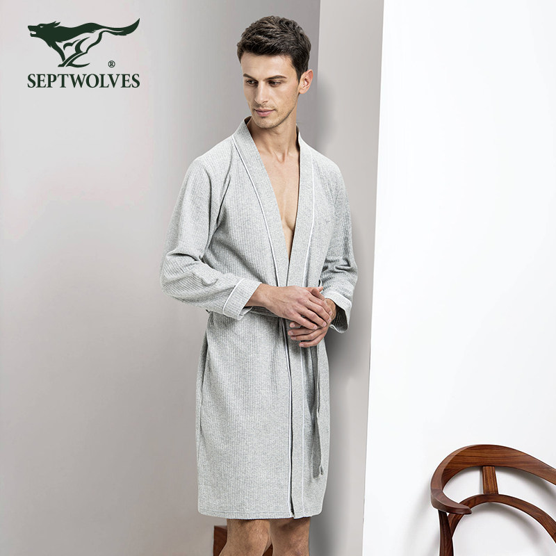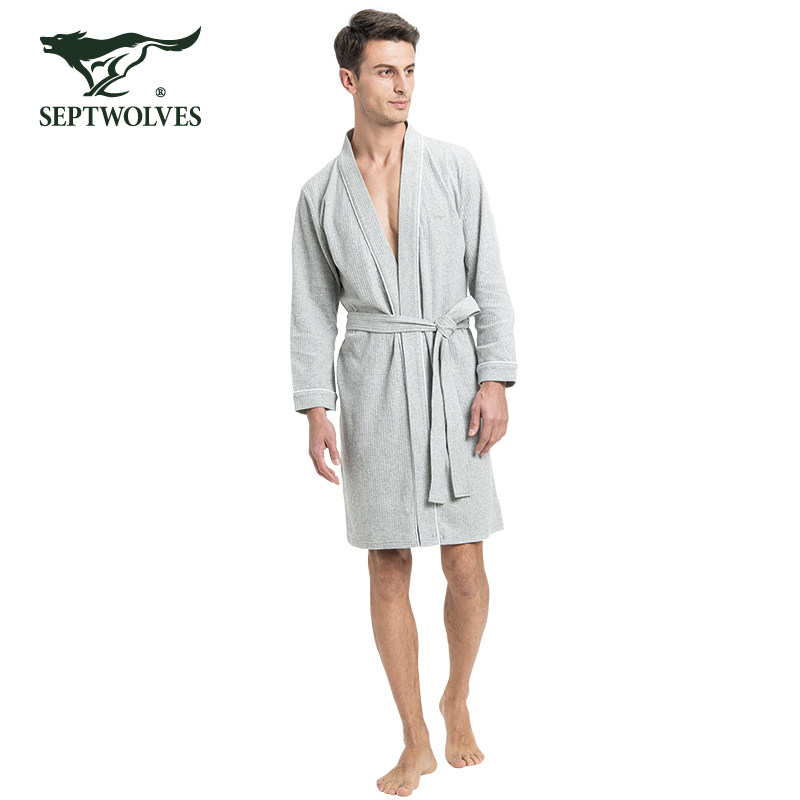 天猫4838134438934096056,七匹狼男士睡衣纯棉睡袍家居服