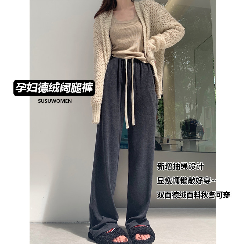 淘宝SUSUWOMEN 苏苏定制孕装,孕妇德绒春秋加绒休闲外穿阔腿裤