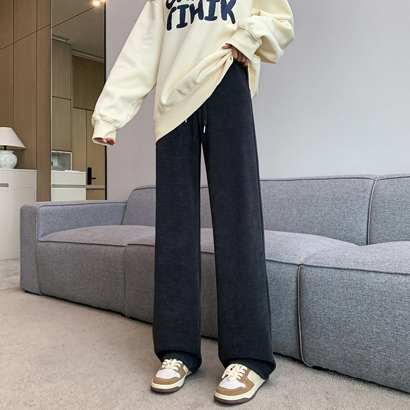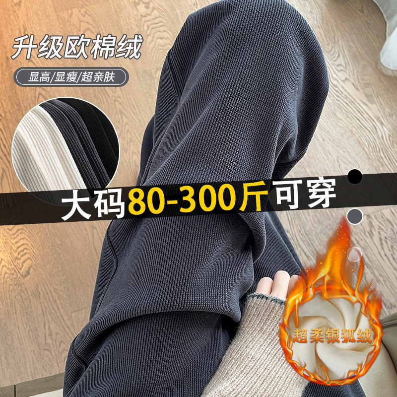淘宝潮衫定制大码女装,大码胖mm梨形身材雪尼尔阔腿裤女秋冬加绒宽松显瘦高腰垂感直筒裤