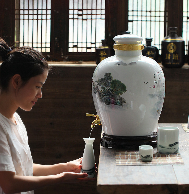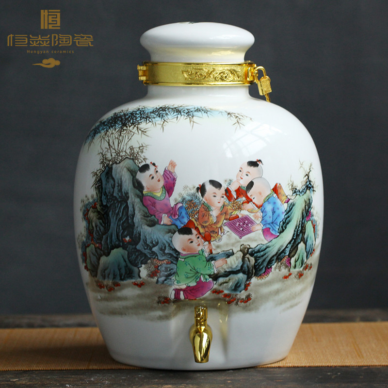 淘宝保保的小店6,景德镇陶瓷酒坛10斤20斤30斤骨瓷泡酒罐子酒缸壶密封带龙头家用