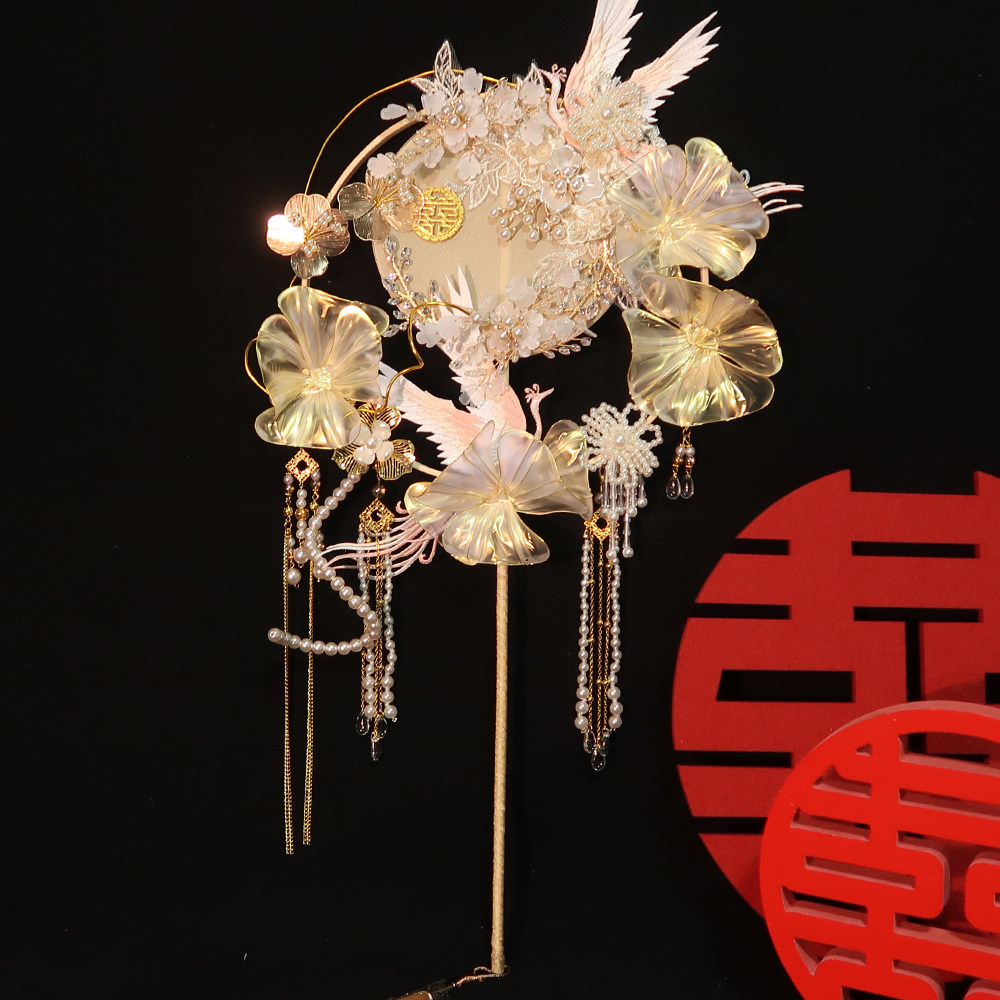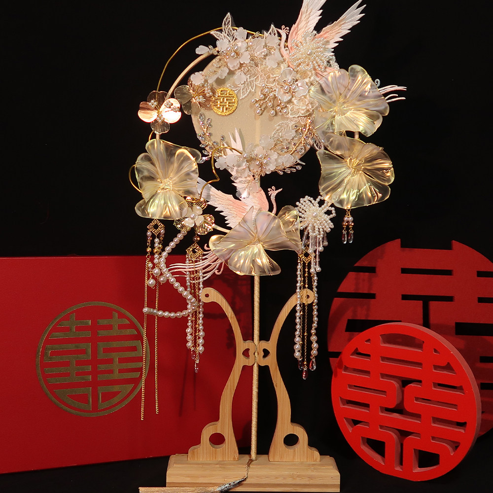 淘宝扇缘团扇,新娘结婚手作婚礼秀禾古风汉服婚扇中式喜扇手工团扇diy材料包花