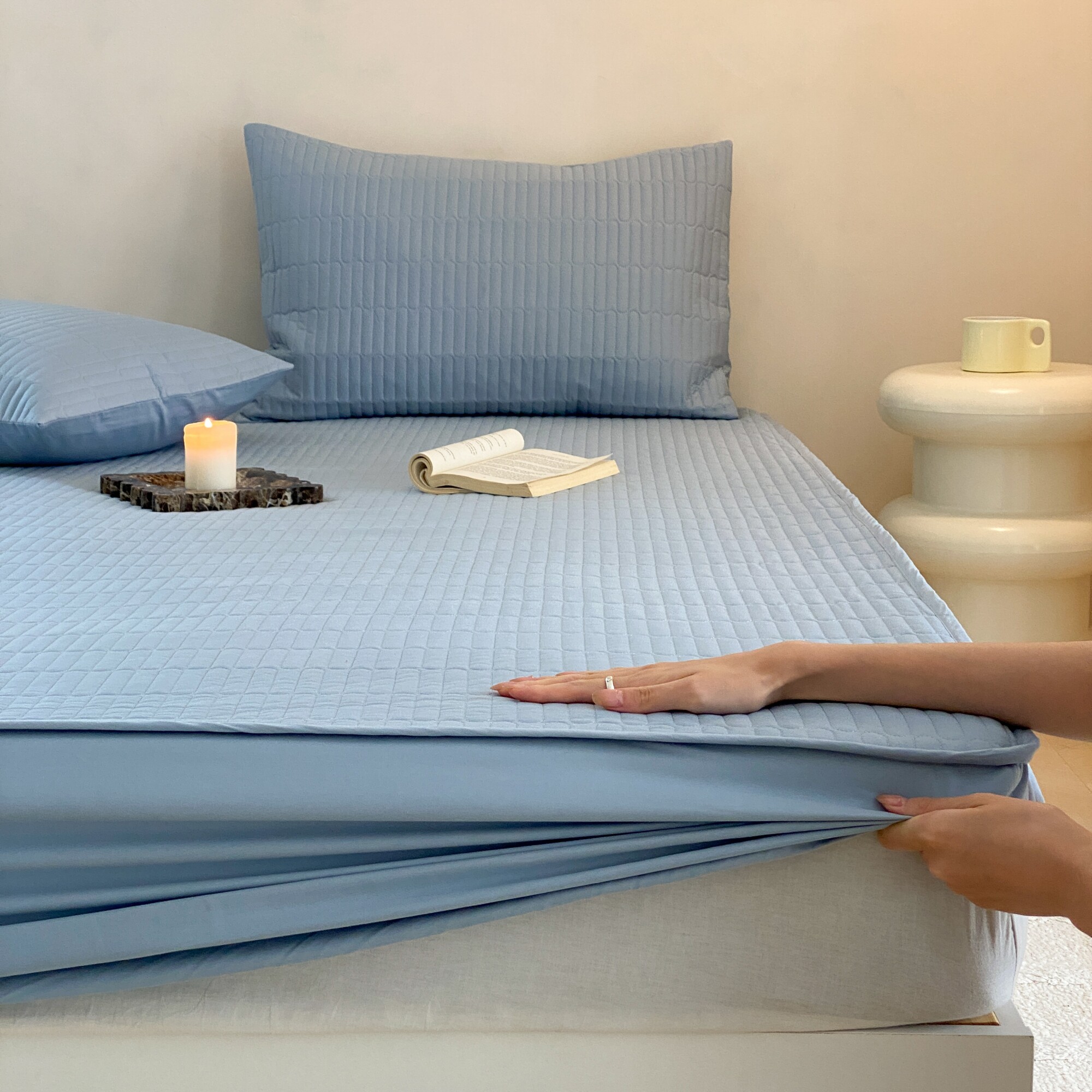 淘宝雅惠外贸,纯色全棉绗缝夹棉床笠2m大床可机洗纯棉床罩防滑席梦思床垫保护套