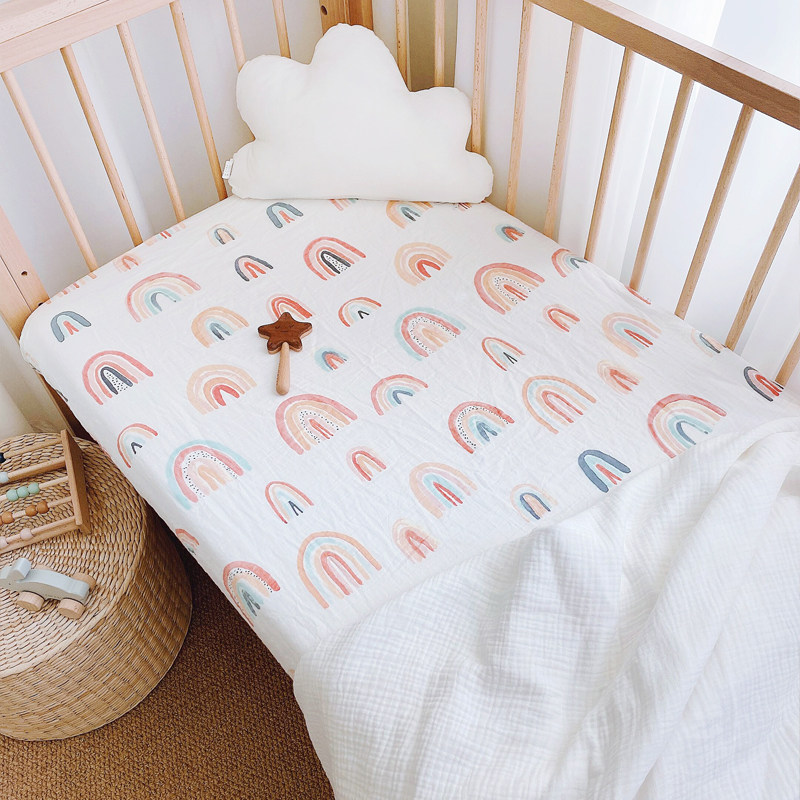 淘宝爱予宝贝yumebaby,爱予宝贝ins欧风新生拼接床笠宝宝全棉纱布床垫罩130*70cm无荧光
