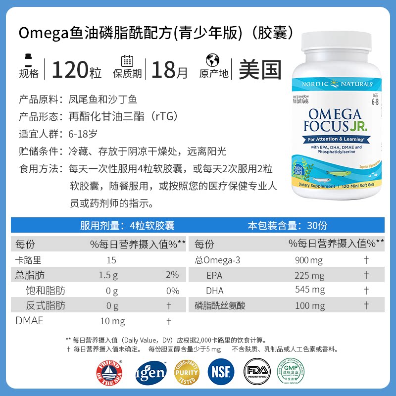 淘宝毛毛童话母婴,挪威小鱼focus青少年专注力omega3儿童鱼油DHA含ps磷脂酰丝氨酸