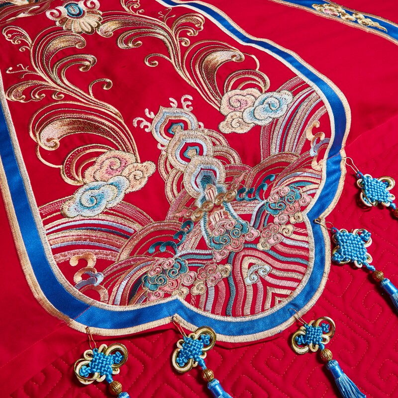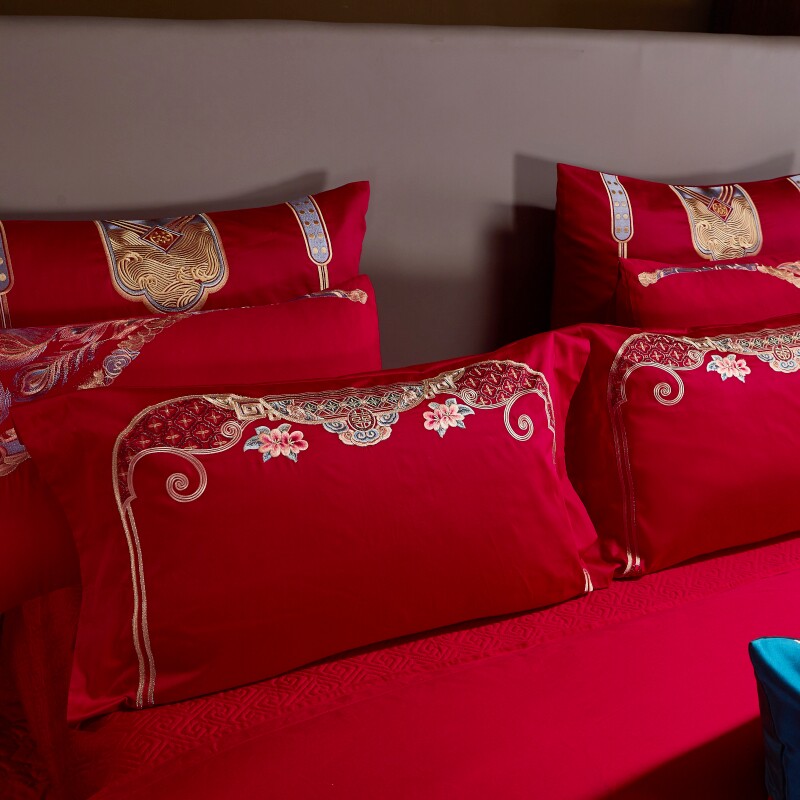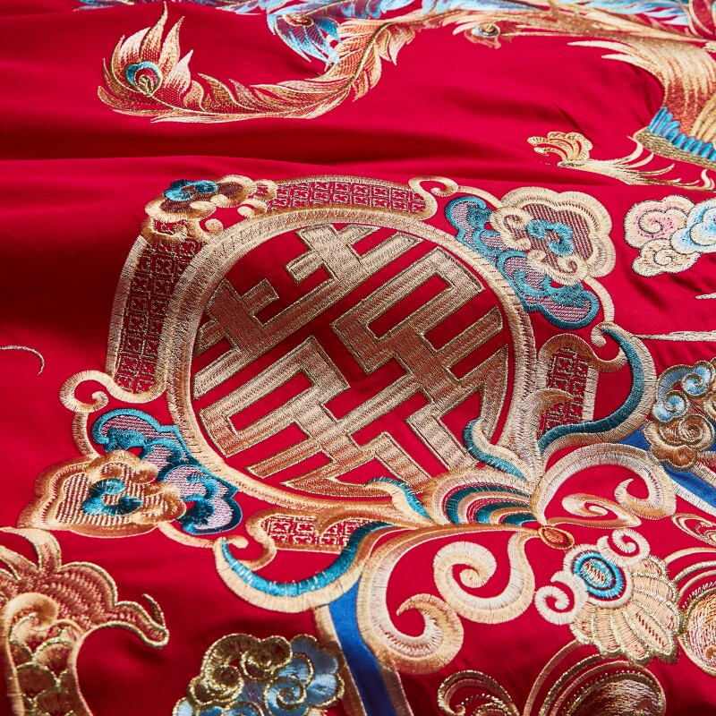 全棉高端婚庆刺绣大红四件套多件套纯棉轻奢中式婚礼嫁娶喜庆床品