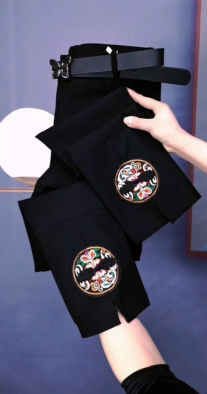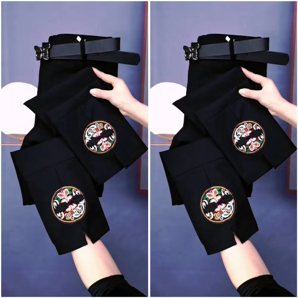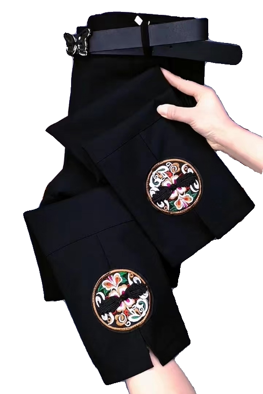 淘宝518大码女装,八分刺绣烟管裤女显瘦