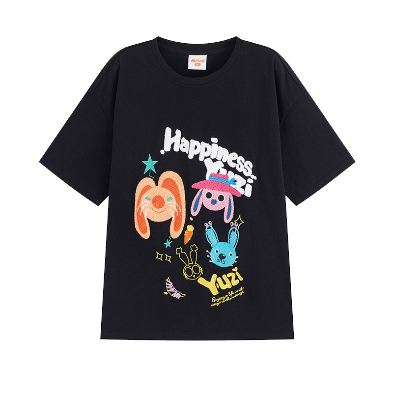 天猫YUZI鱼子服饰旗舰店,YUZIT恤刺绣可爱百搭舒适,上衣T恤刺绣可爱大码女装微胖mm妹显瘦遮肉