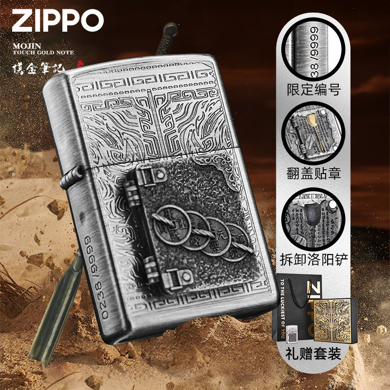 天猫zippo芝宝钧灿专卖店,zippo正品打火机摸金笔记,官方正品 精致贴章 创意国风