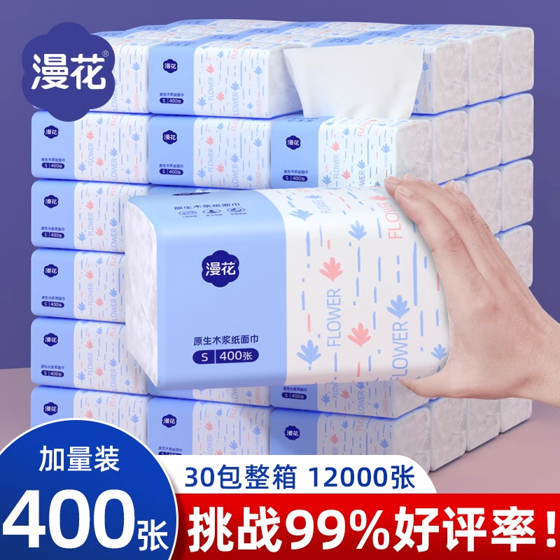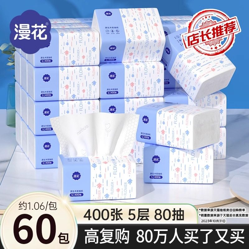 淘宝261349541645793466,漫花抽纸400张纸巾大包家庭实惠装家用餐巾纸面巾纸可擦手卫生纸