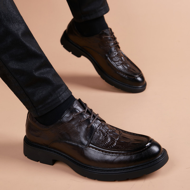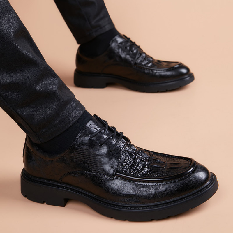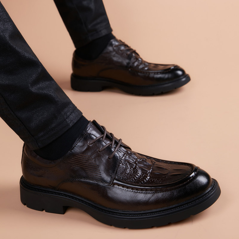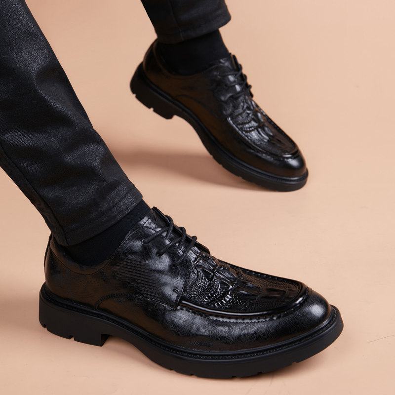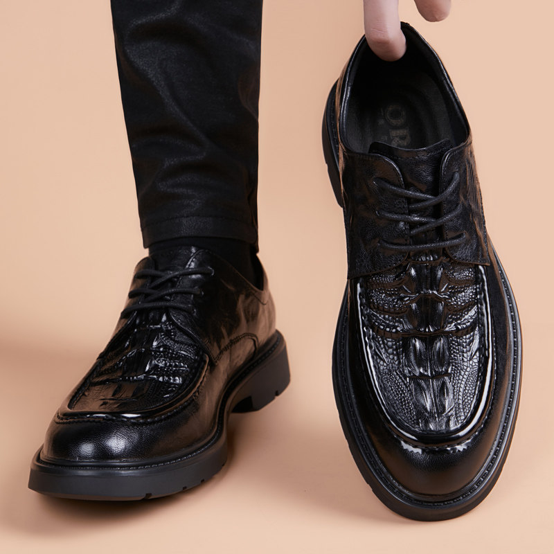 淘宝杭州时尚精品男鞋店,皮鞋男真皮商务休闲青年羊皮鳄鱼纹2024新款韩版英伦尖头内增高鞋