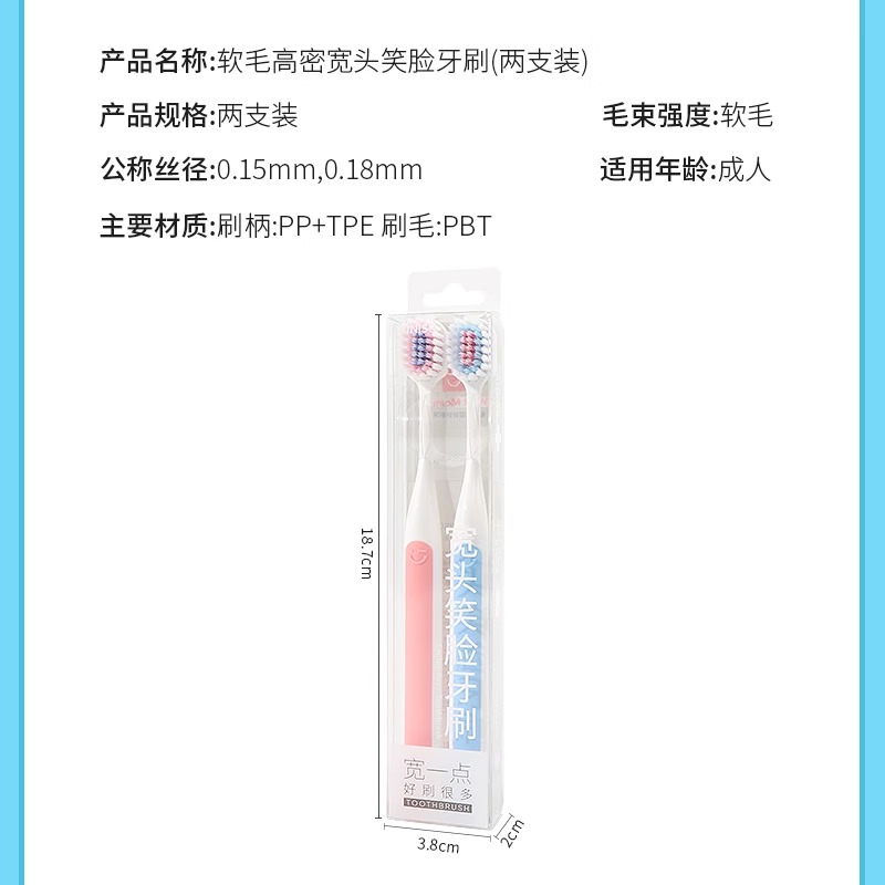 淘宝MINISO名创优品优购店,MINISO名创优品软毛高密宽头笑脸牙刷两支装情侣超软护龈柔软家用