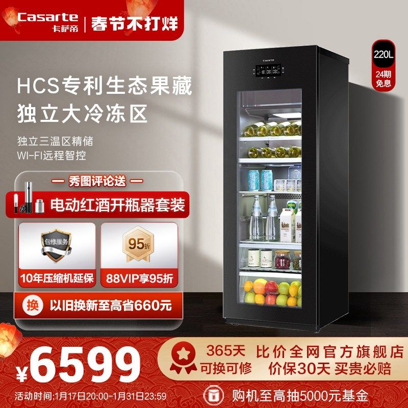 天猫卡萨帝官方旗舰店,casarte /卡萨帝220升家用酒柜,HCS专利生态果藏 独立大冷冻区