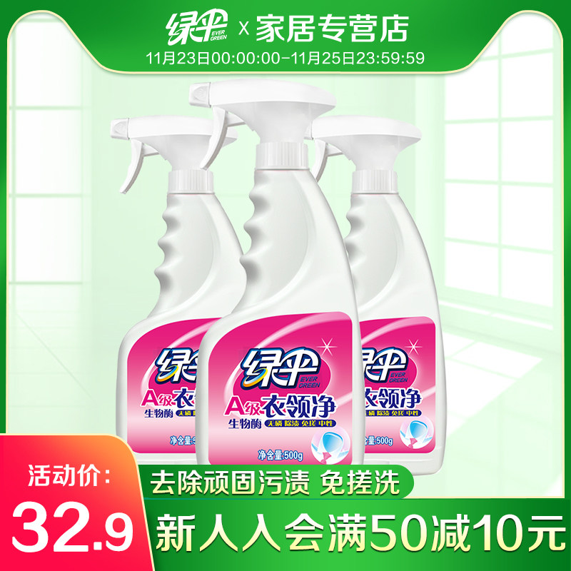 天猫绿伞家居专营店,绿伞衣领净500g*3瓶 袖口衣领免搓洗洗衣预洗喷剂洁净干洗店适用,轻松去污 袖口衣领免搓洗 无荧光剂