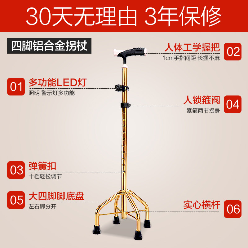 天猫可孚医疗器械旗舰店,可孚拐棍老人手杖四脚轻便防滑,安稳四脚 防滑带灯 多色可选