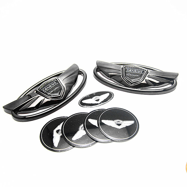 7件套现代劳恩斯酷派方向盘改装车标 前后翅膀车标 轮毂盖标银黑