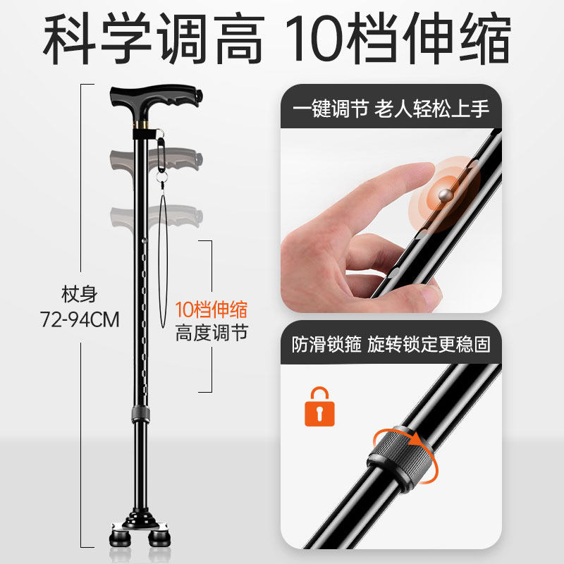 天猫阿里健康大药房,拐杖助步器老人防滑四脚稳固,10档伸缩调节、医用品质 、稳固防滑