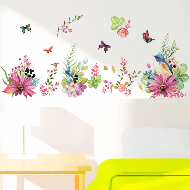可移除墙贴国风花鸟客厅卧室橱窗房门贴简约田园家装贴纸画