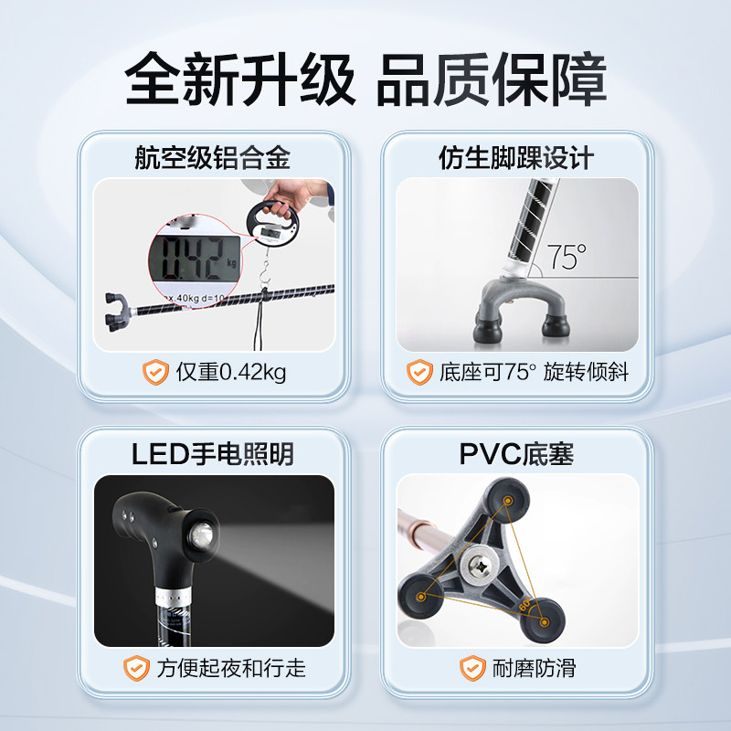天猫可孚医疗器械旗舰店,可孚老人防滑拐杖三脚轻便防滑,高度可调节 轻便带灯 多款可选