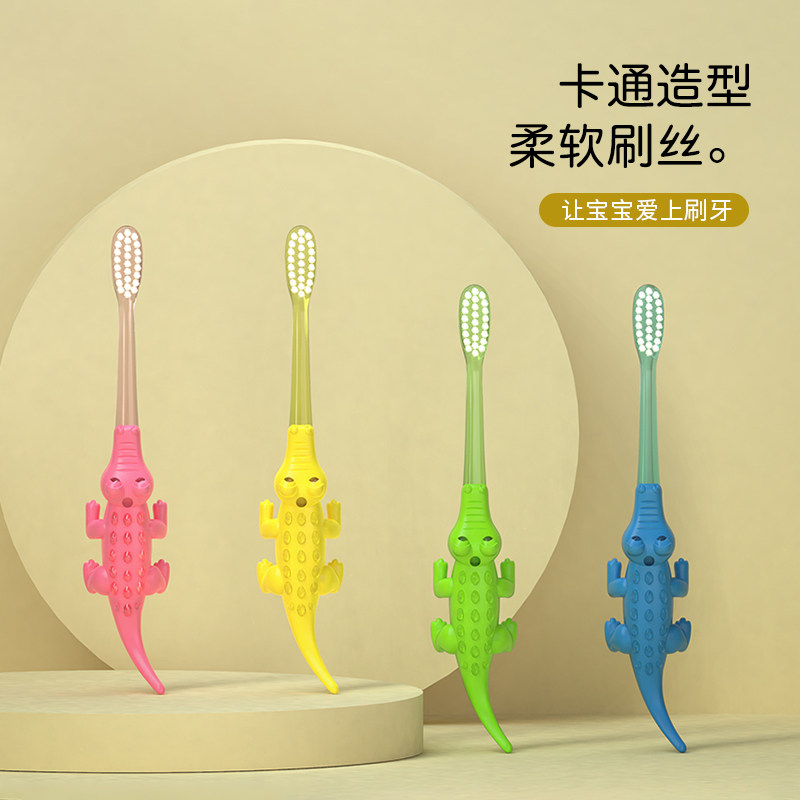 天猫桃小米旗舰店,卡通小鳄鱼软毛3-6-10岁宝宝4牙刷,卡通造型 柔软刷毛