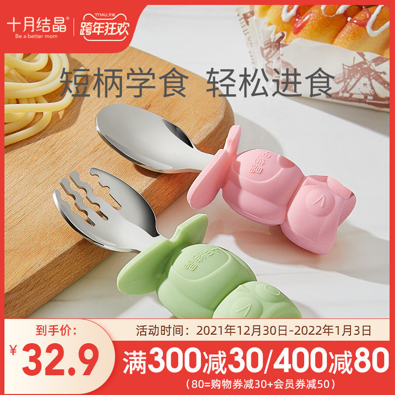 天猫十月结晶旗舰店,十月结晶儿童学吃饭婴儿训练勺子,婴儿304不锈钢叉勺 宝宝自己吃饭香