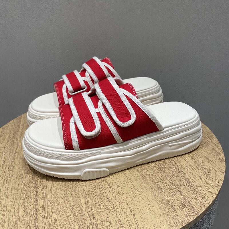淘宝luckygird,魔术贴松糕厚底凉拖女外穿帆布拖鞋