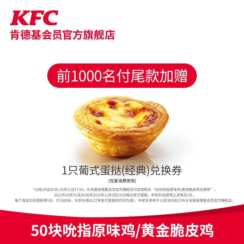 天猫肯德基会员官方旗舰店,【双11预售】电子券码 肯德基 50块吮指原味鸡/黄金脆皮鸡兑换券