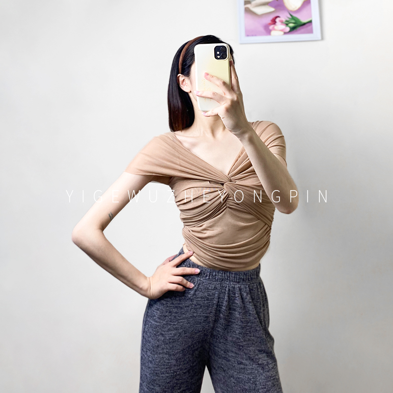 淘宝一格舞蹈用品店,一格网纱上衣短袖女古典舞练功服