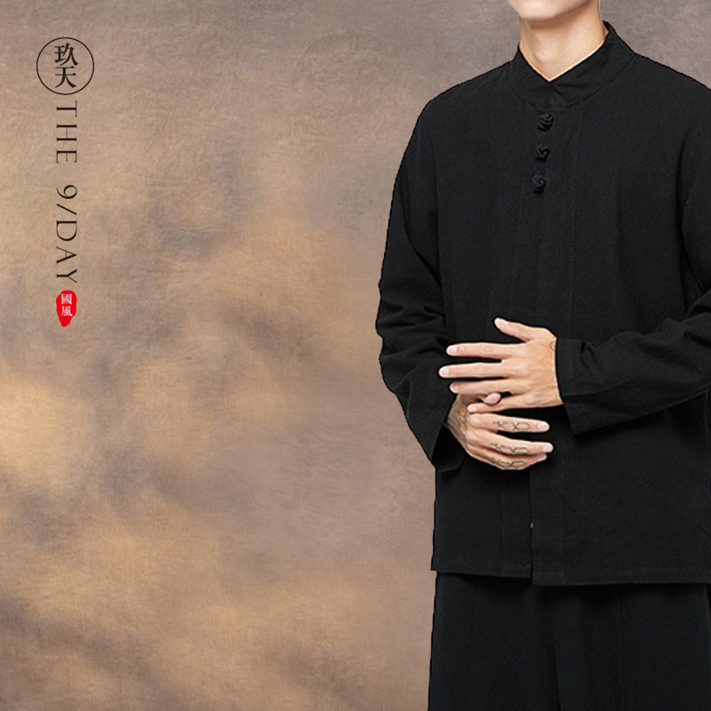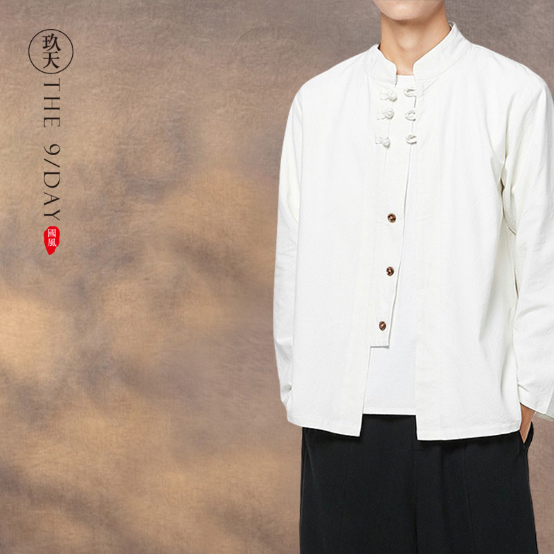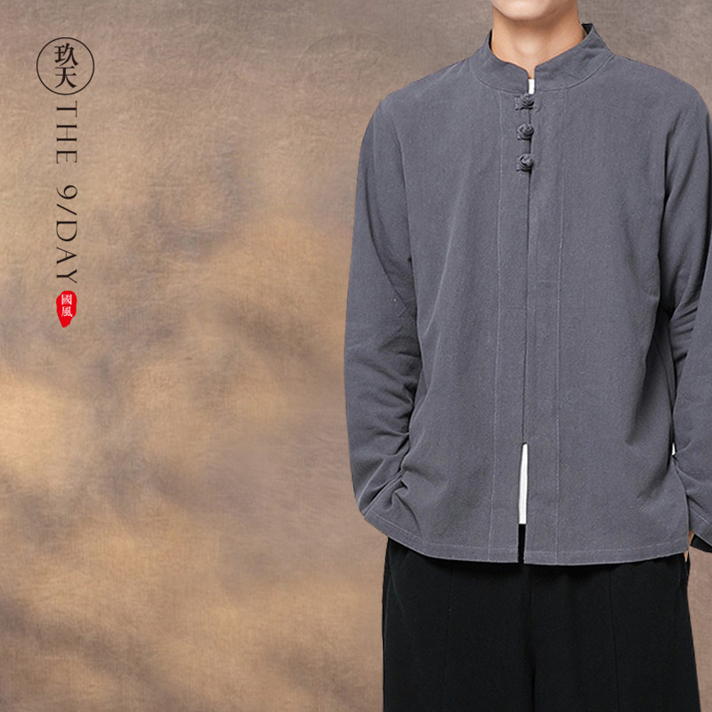 淘宝玖 天 原创工作室,中国风男装秋季盘扣长袖中式衬衫