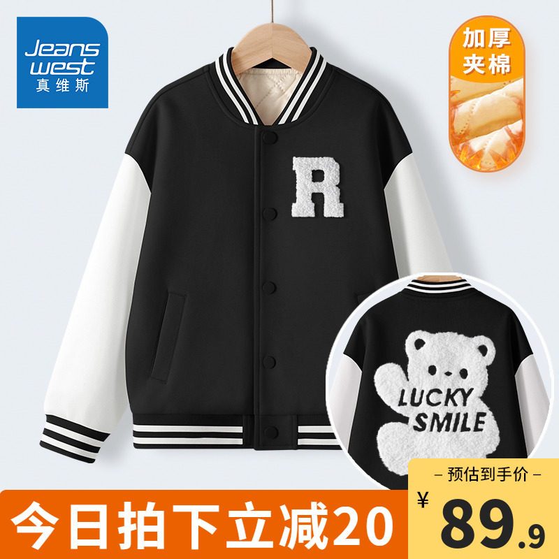 天猫真维斯童装旗舰店,真维斯童装男童外套冬季男大童秋冬款夹棉棒球服儿童加厚夹克开衫