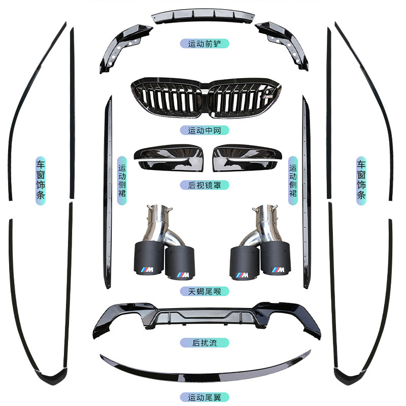 适用于20-25款宝马3系前铲前唇改装中网侧裙后扰流尾翼耀夜MP套件