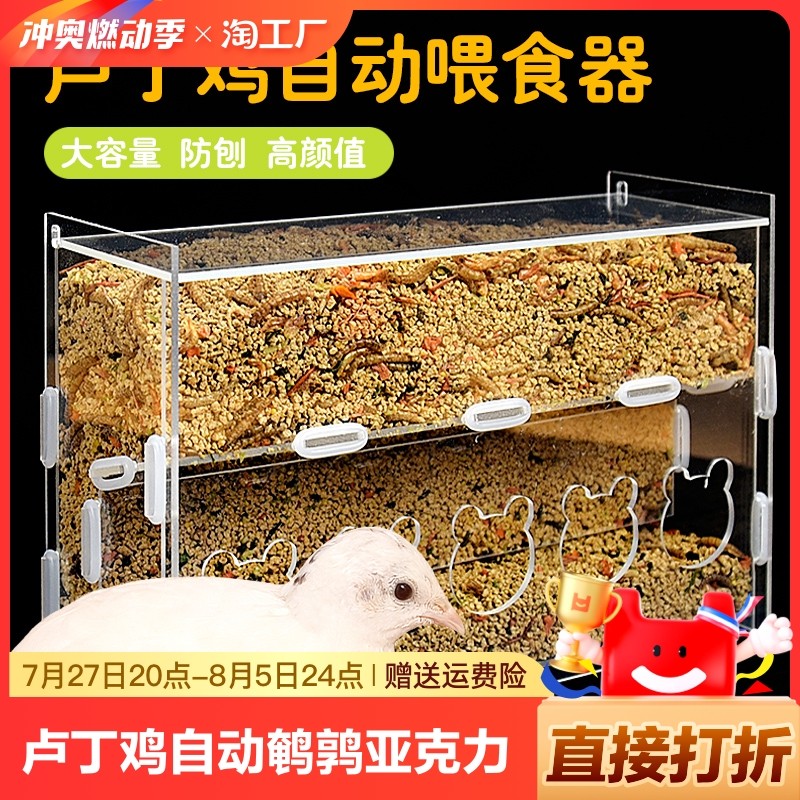 天猫天天特卖工厂店,卢丁鸡喂食器自动鹌鹑下料器雏鸡亚克力食盒芦丁鸡食槽饲料盒用品,潮流精品,品质保证