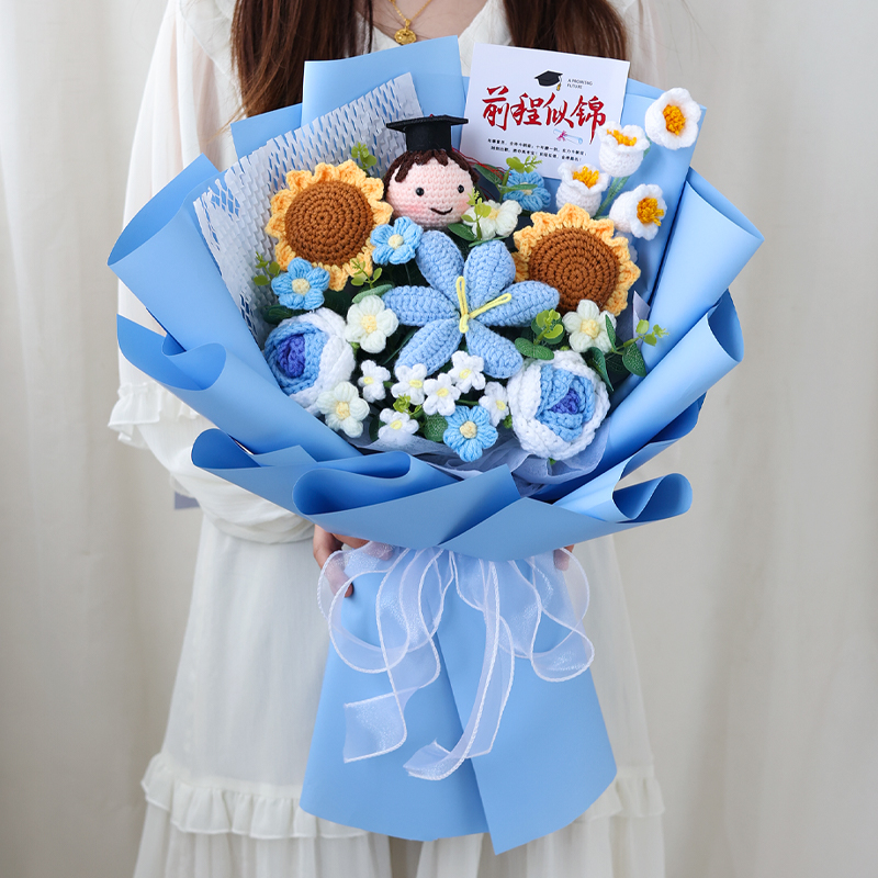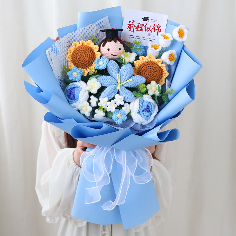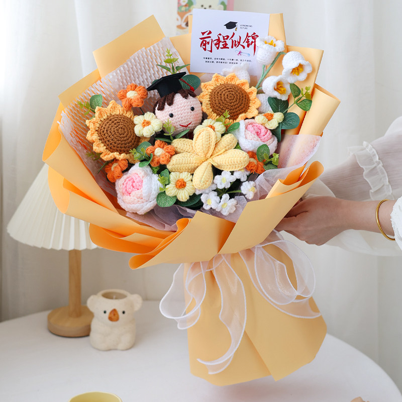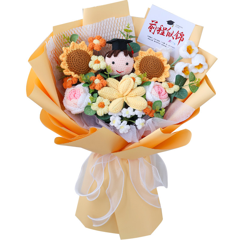 淘宝遇见花艺礼品,生日礼物针织仿真毛线手工编织创意向日葵毕业季花束送中高考学生