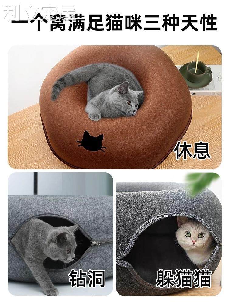 淘宝利立宠屋,猫窝四季通用冬季保暖猫床毛毡甜甜圈隧道猫咪睡觉的轮胎圆形大型