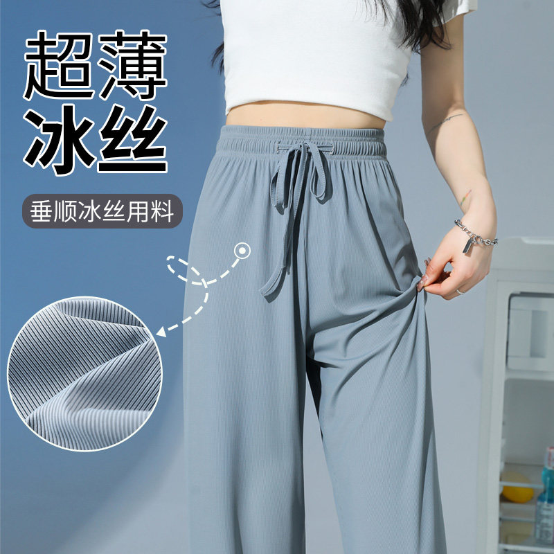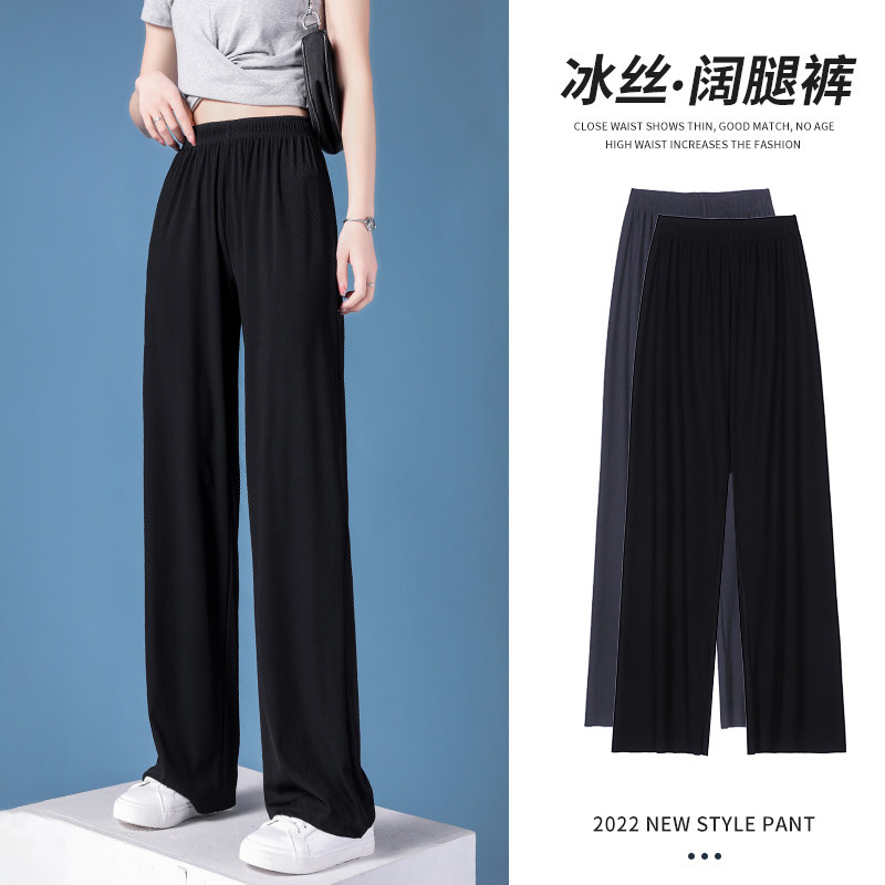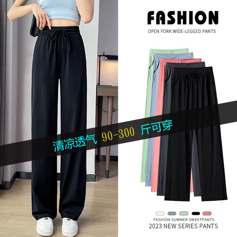 淘宝唯妮美良品,胖mm大码女装黑色冰丝阔腿裤女夏季薄款窄版直筒裤高腰垂感防晒裤