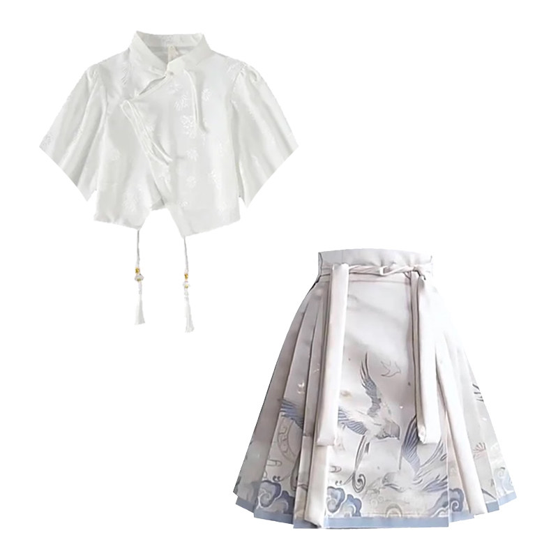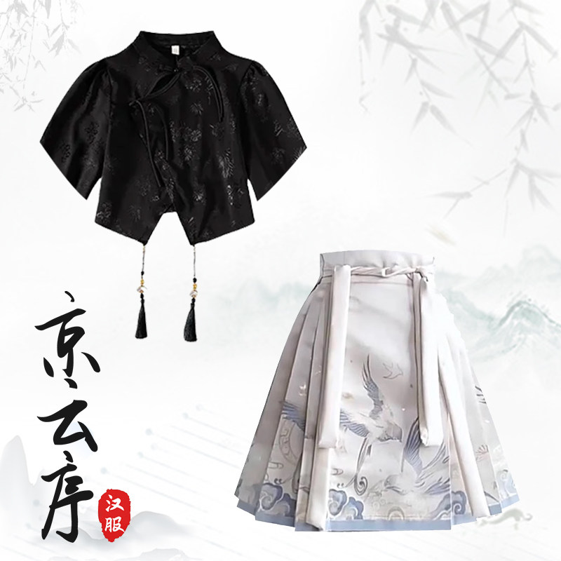 夏季薄款新中式汉元素提花短袖日常气质汉服短款马面裙套装小个子