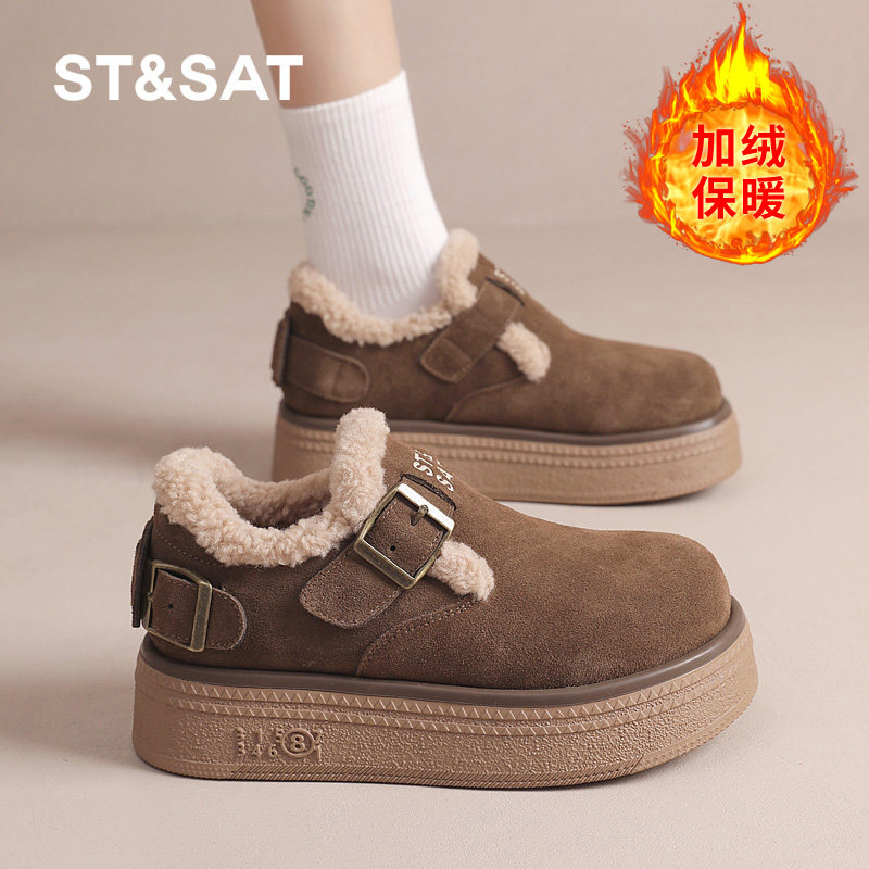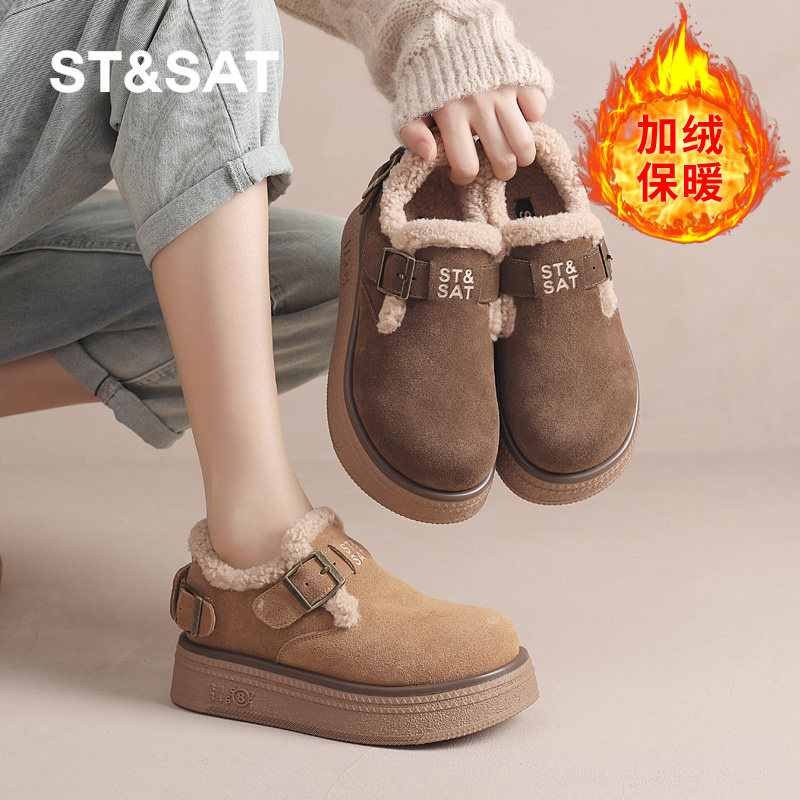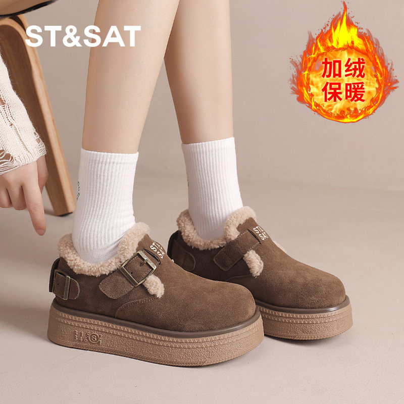 天猫星期六官方旗舰店,星期六厚底勃肯鞋女2025新款冬季加绒保暖棉鞋羊羔毛毛鞋真皮棉鞋,潮流精品,品质保证