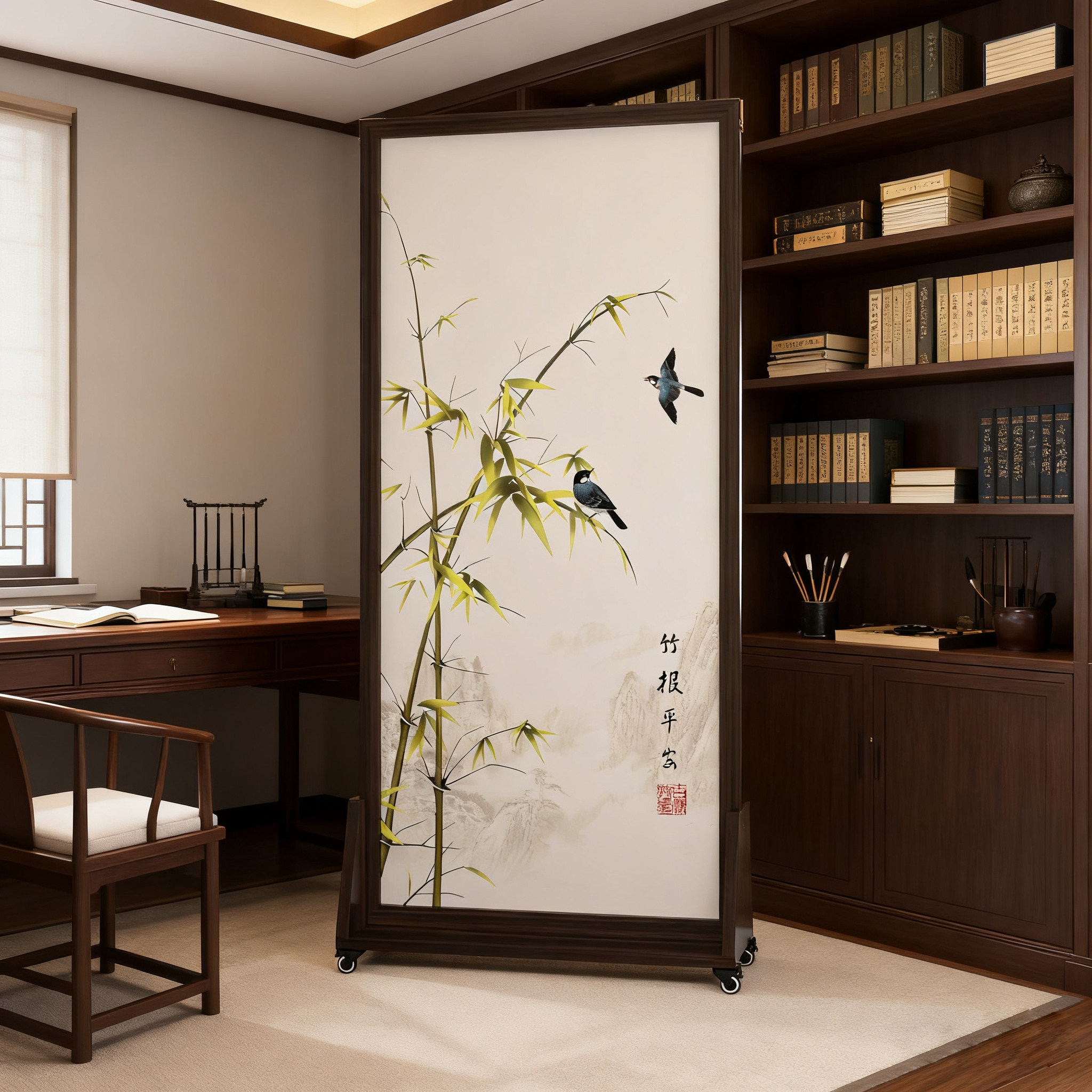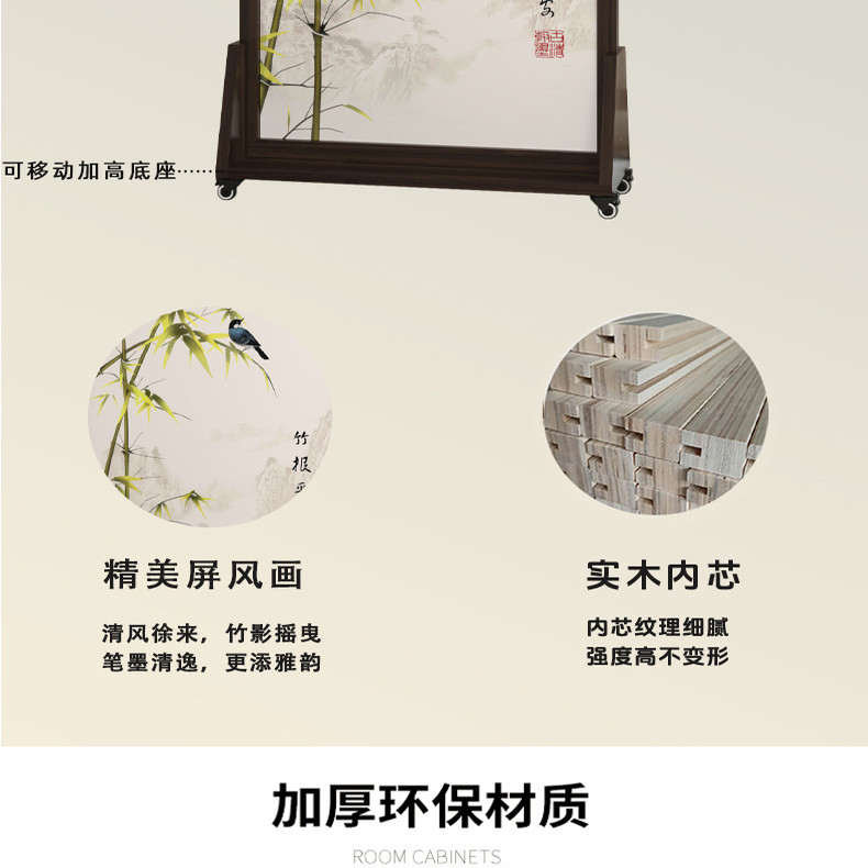 淘宝中正堂家具昆山有限公司,带万向轮】2026新款新中式高端实木折叠屏风隔断可移动办公室遮挡