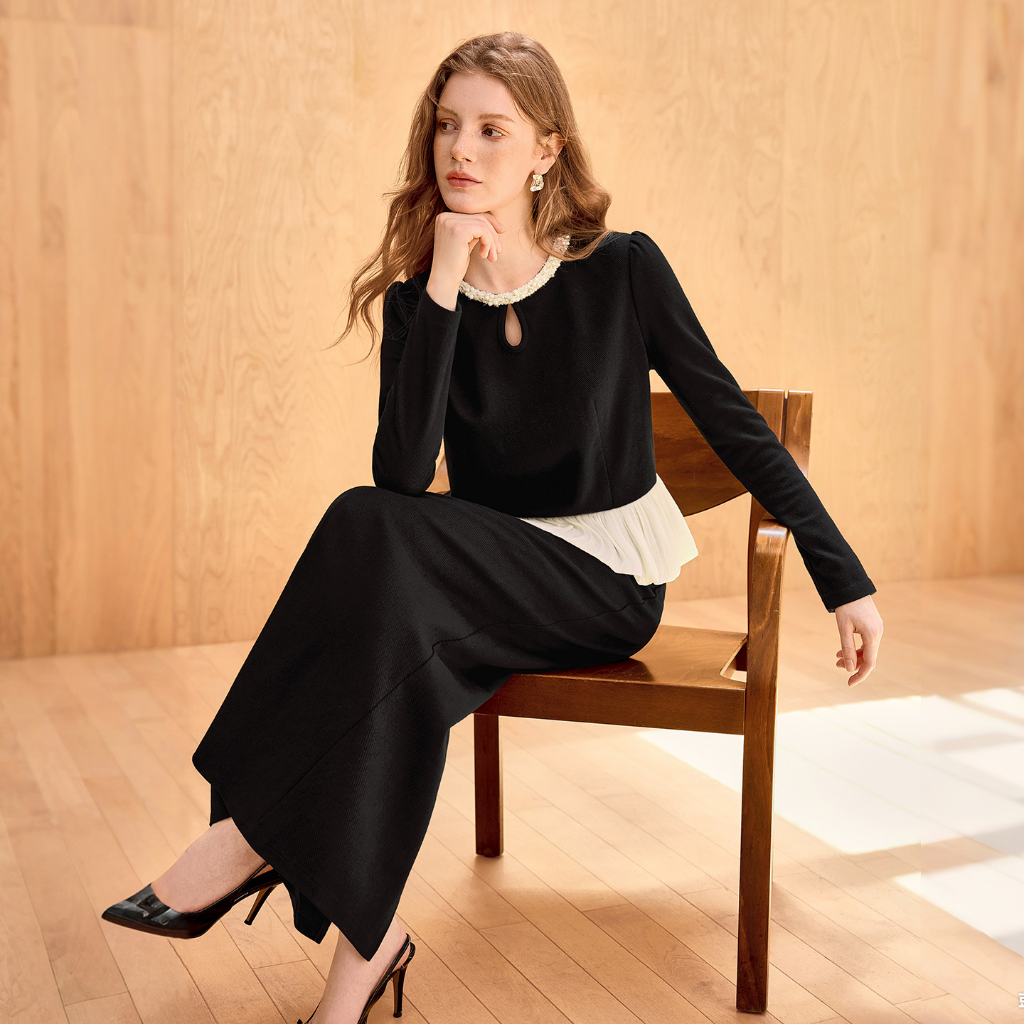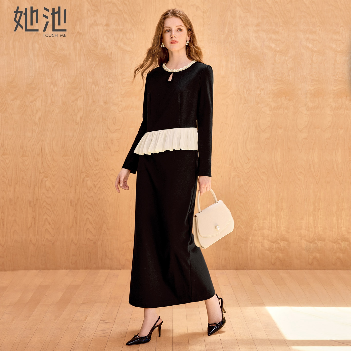 天猫她池旗舰店,她池撞色上衣搭半身裙时尚套装