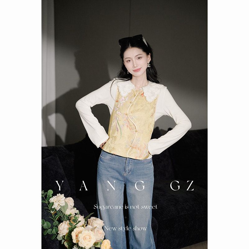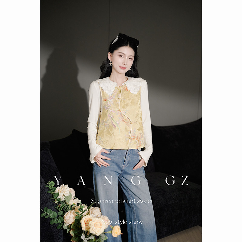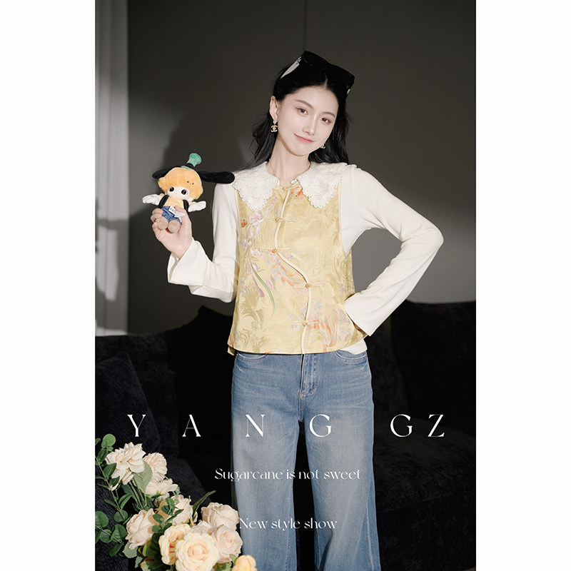 淘宝甘蔗 YANG GZ,桃荷锦鲤纹开衫马甲外穿上衣女