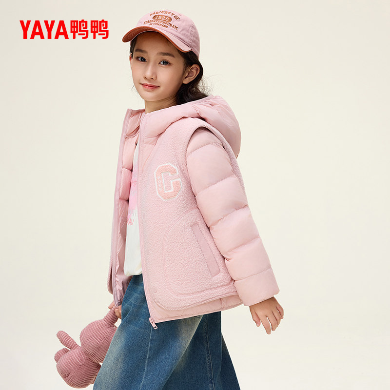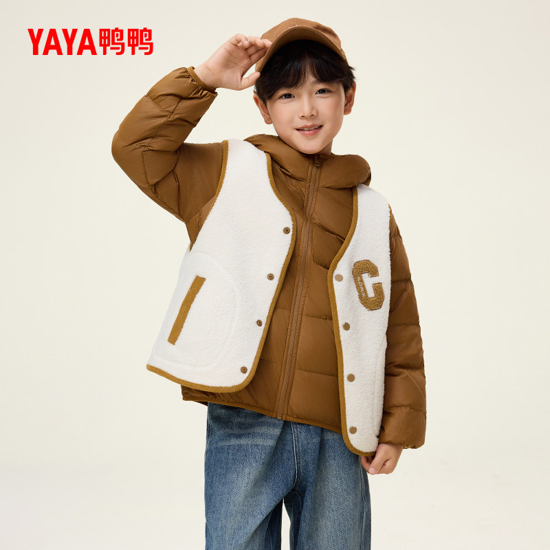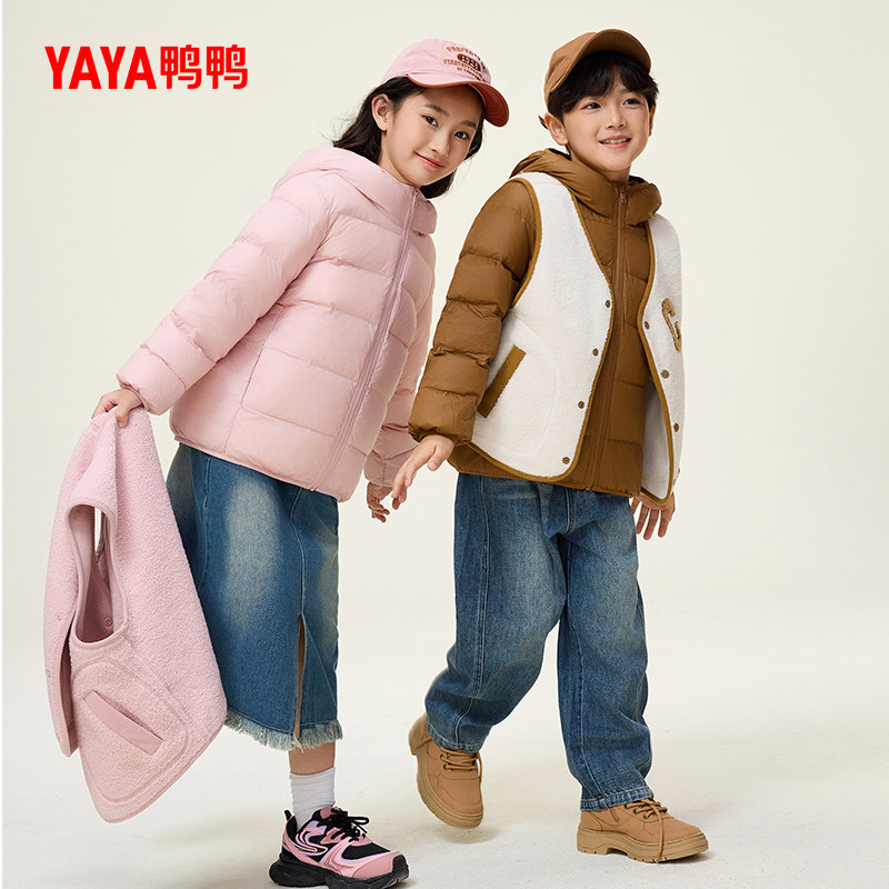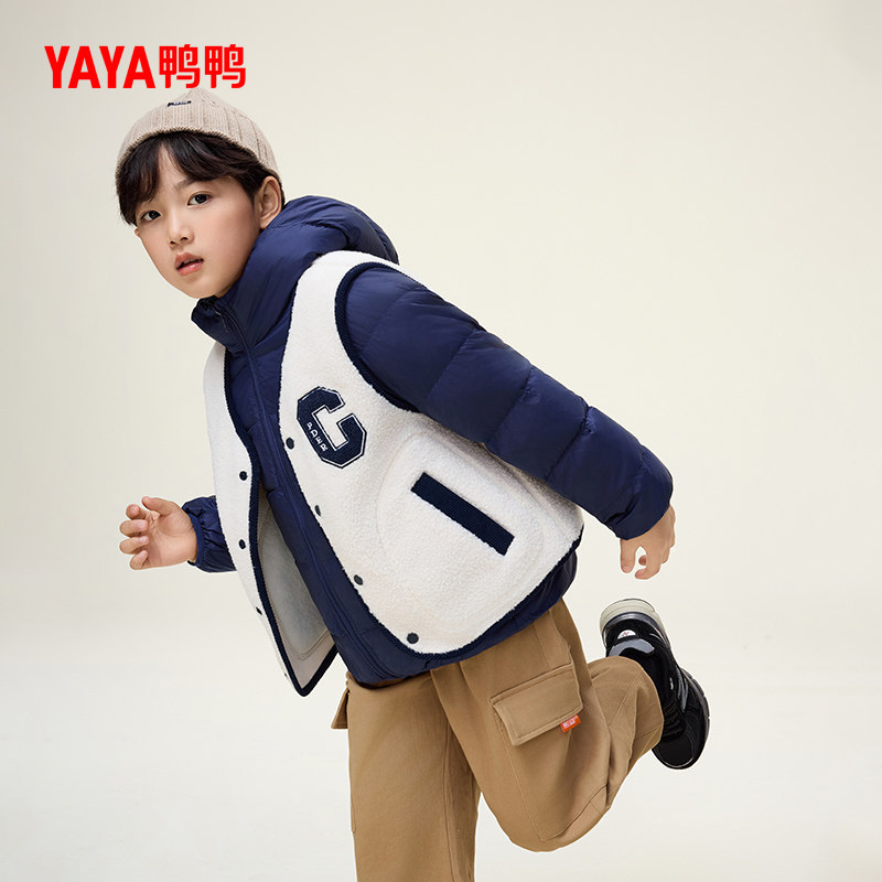 天猫鸭鸭官方旗舰店,鸭鸭短款轻薄男女童两件套羽绒服,羽绒内胆加摇粒绒马甲两件套