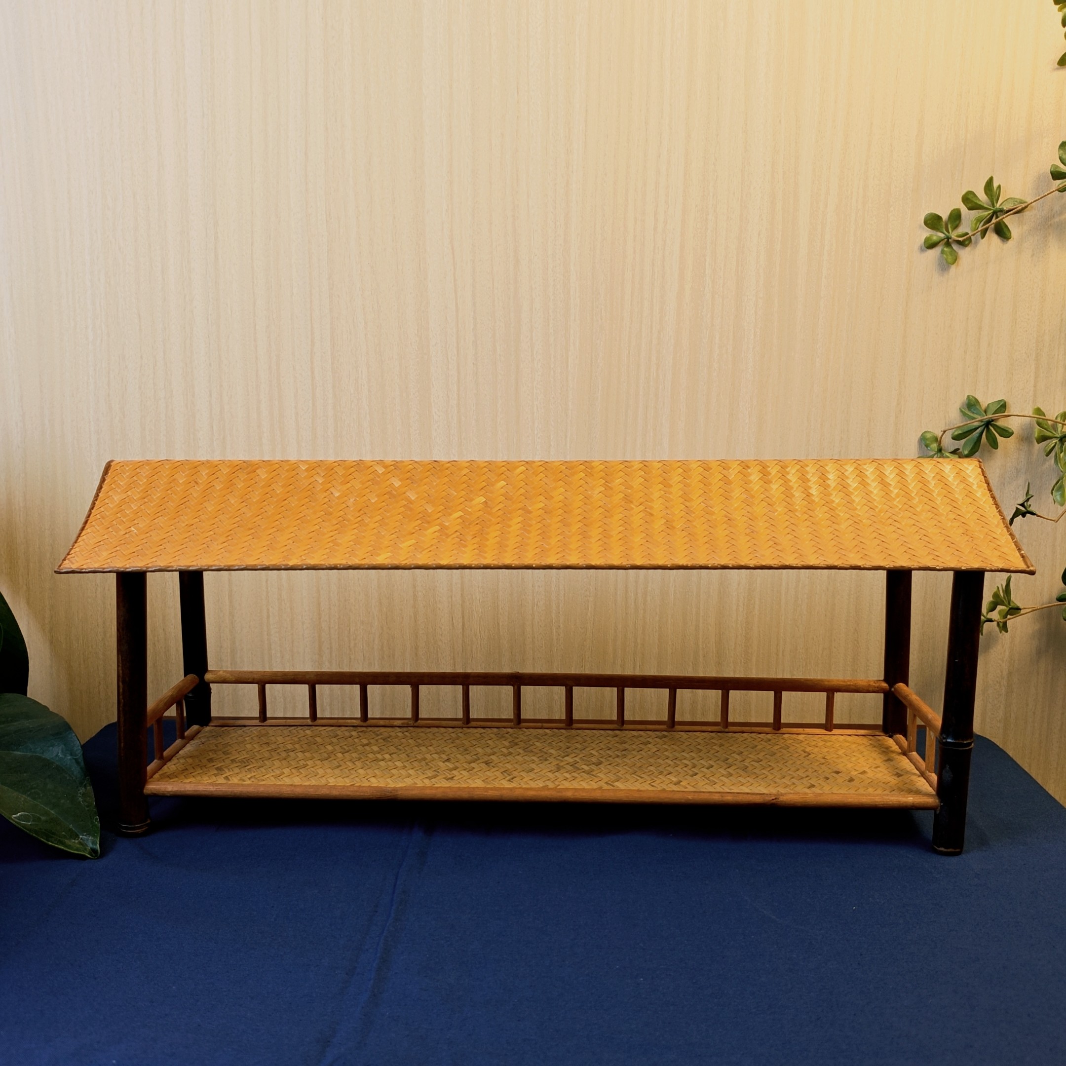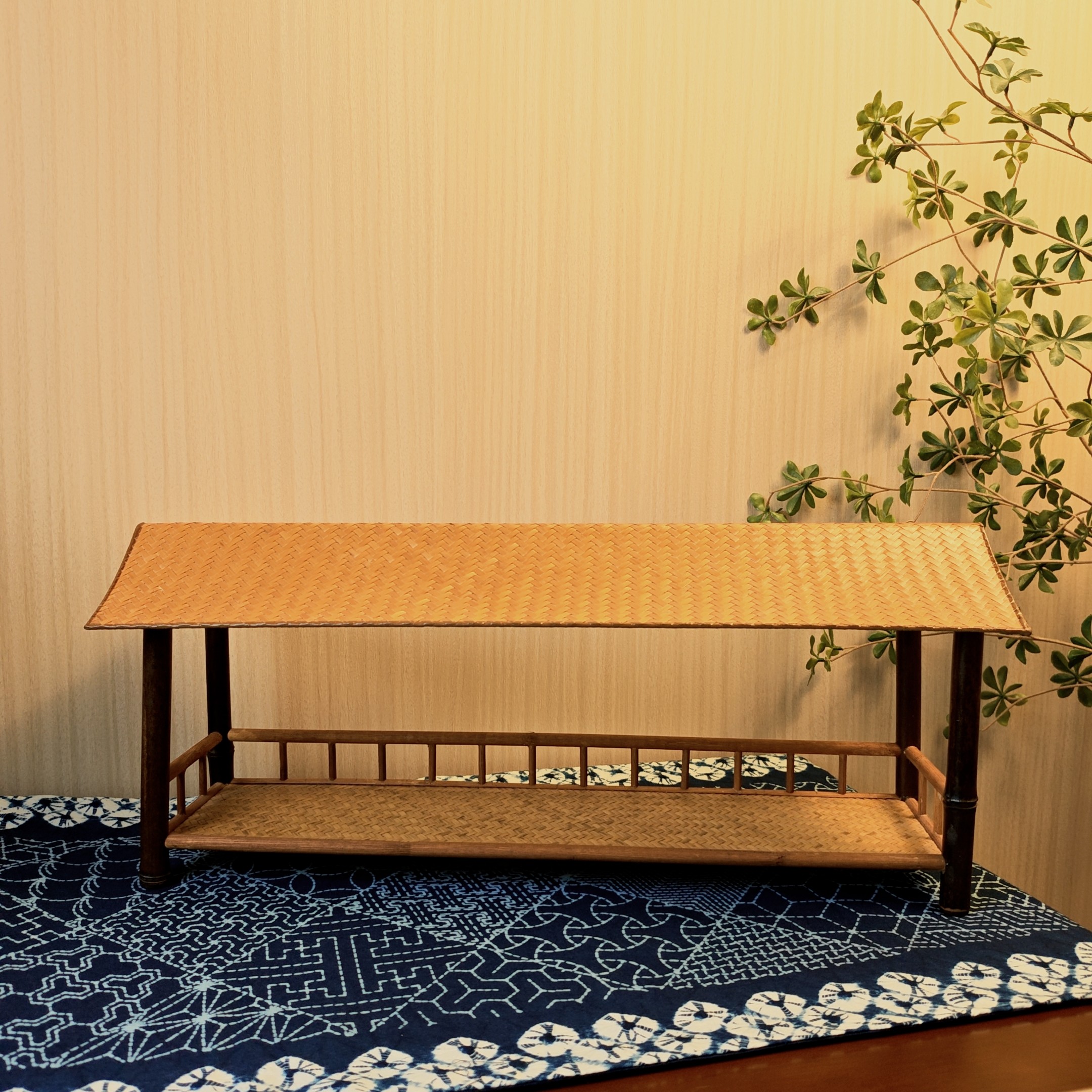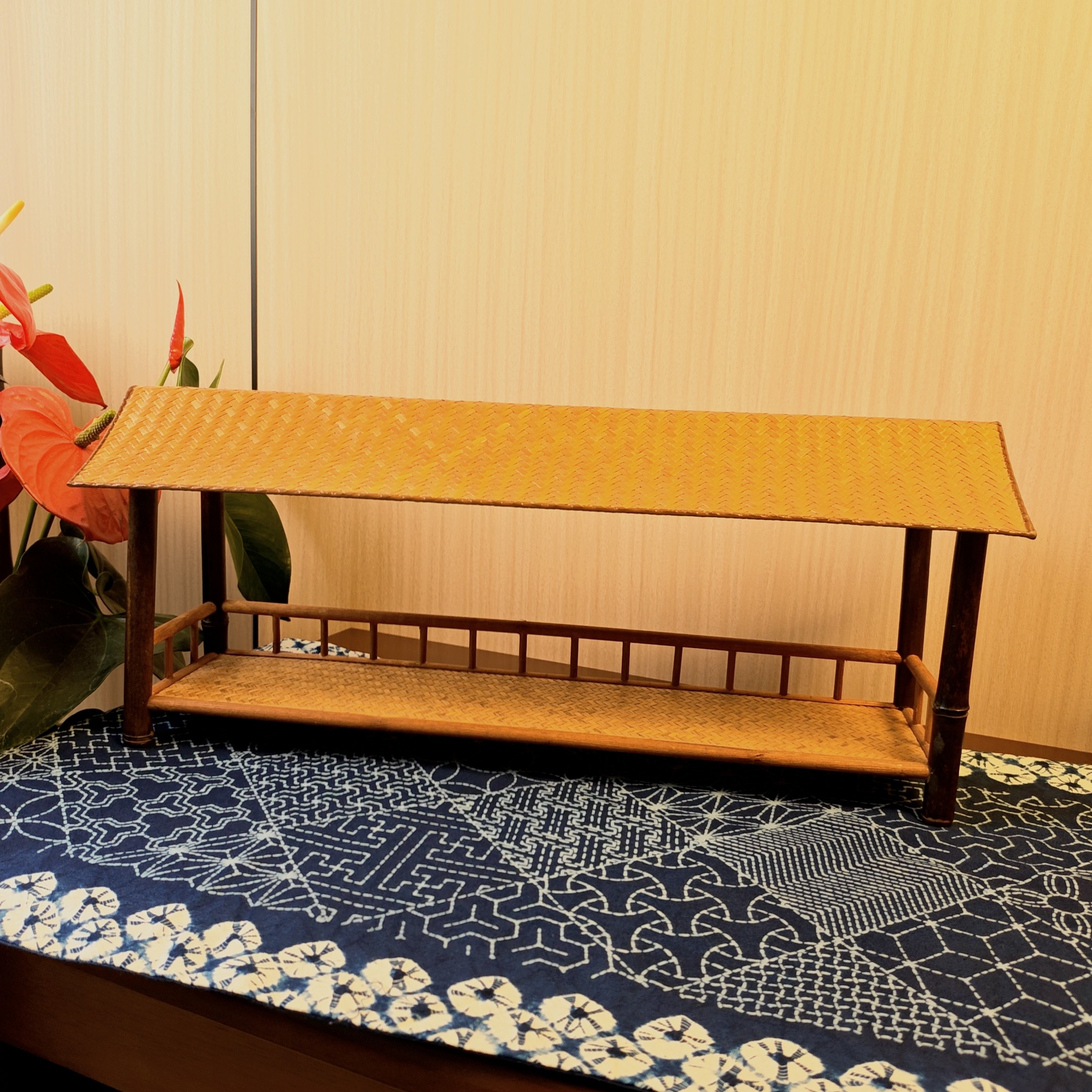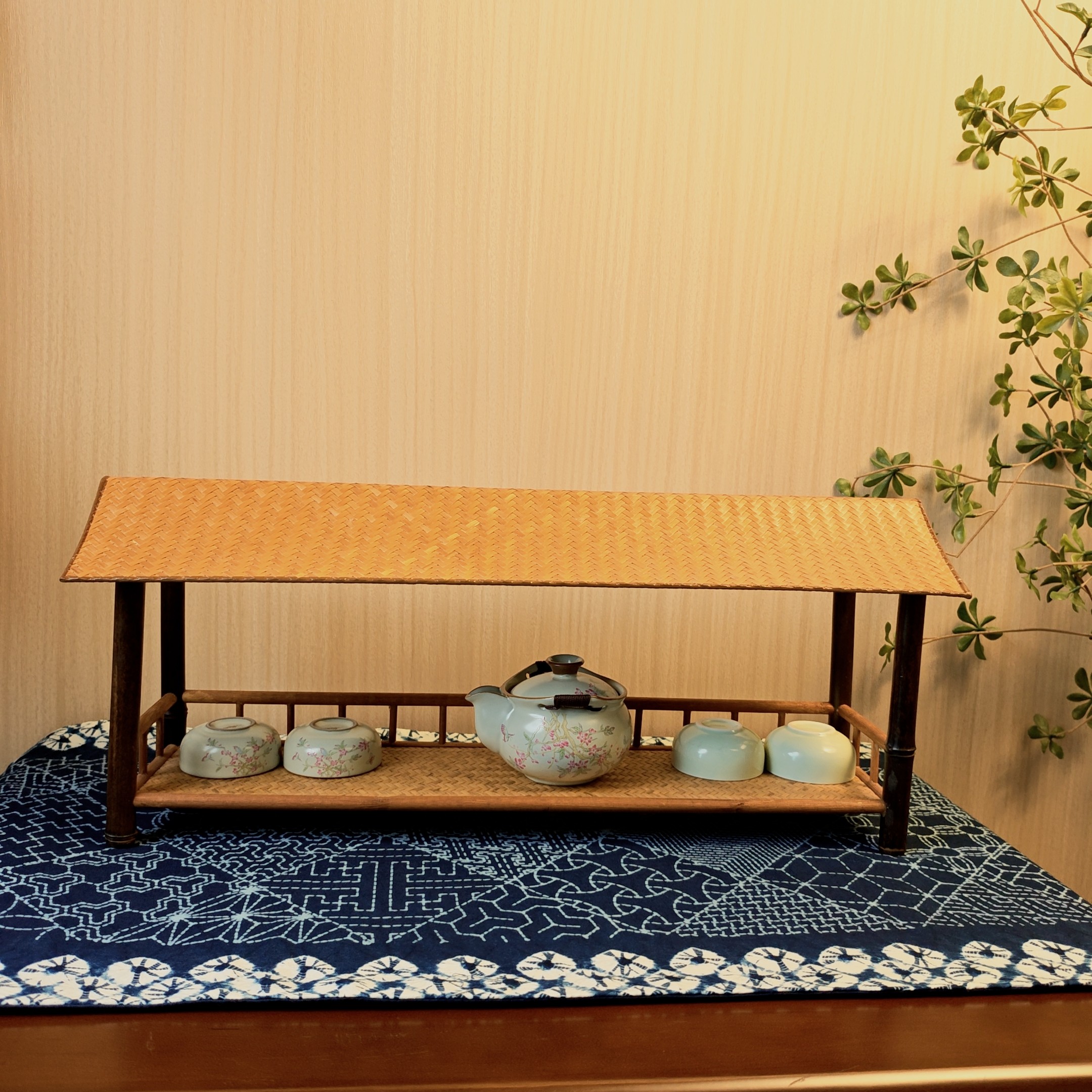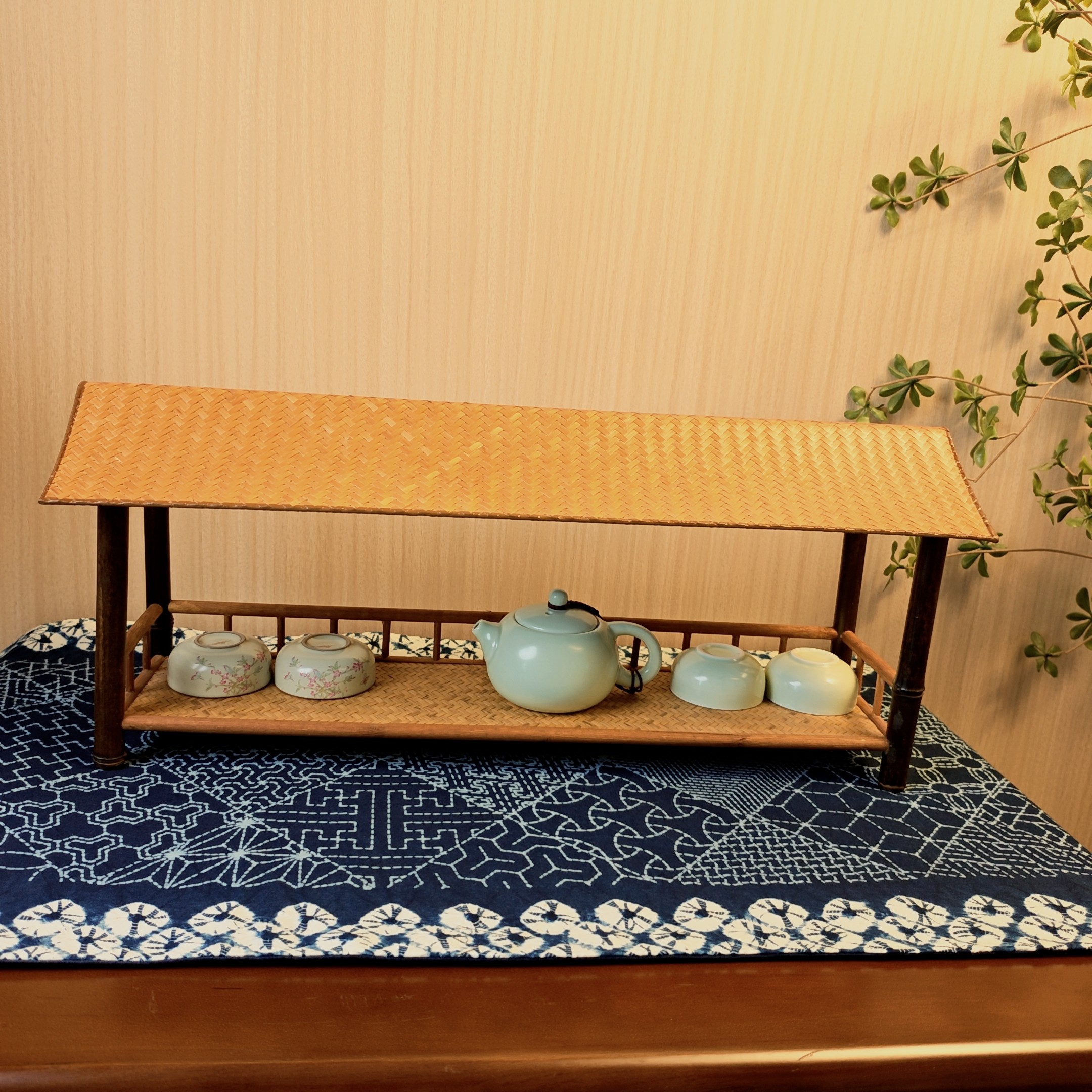 淘宝关河竹语,紫竹单层置物架茶壶架小博古架收纳架中式中古风侘寂竹编竹藤