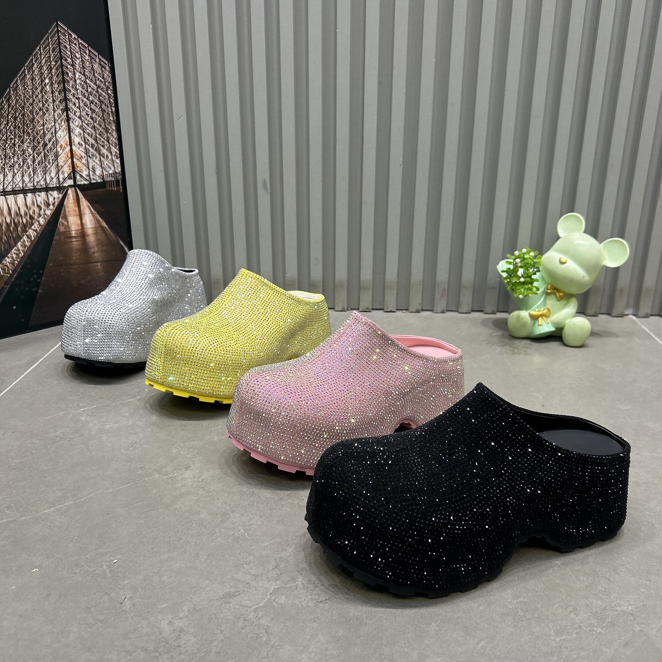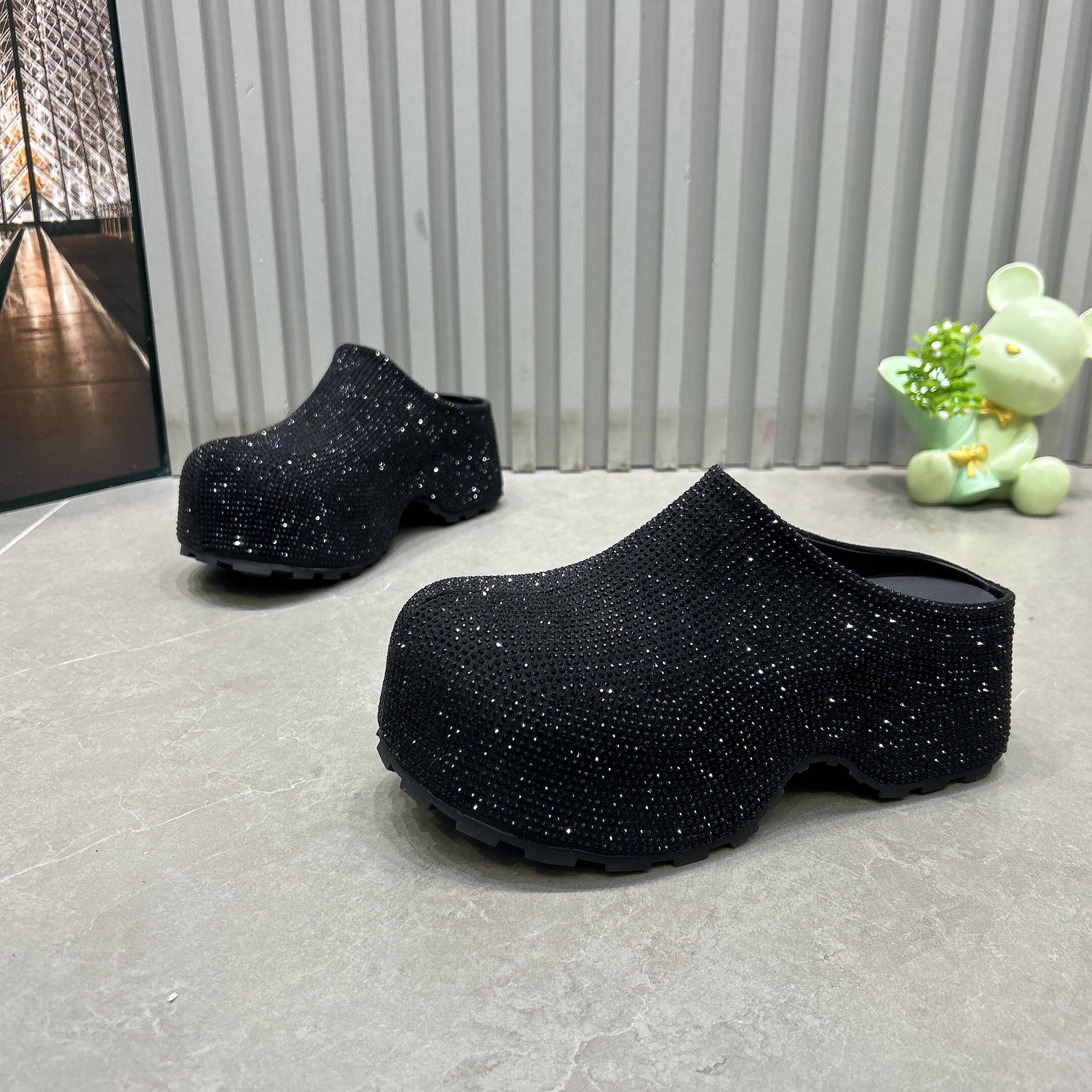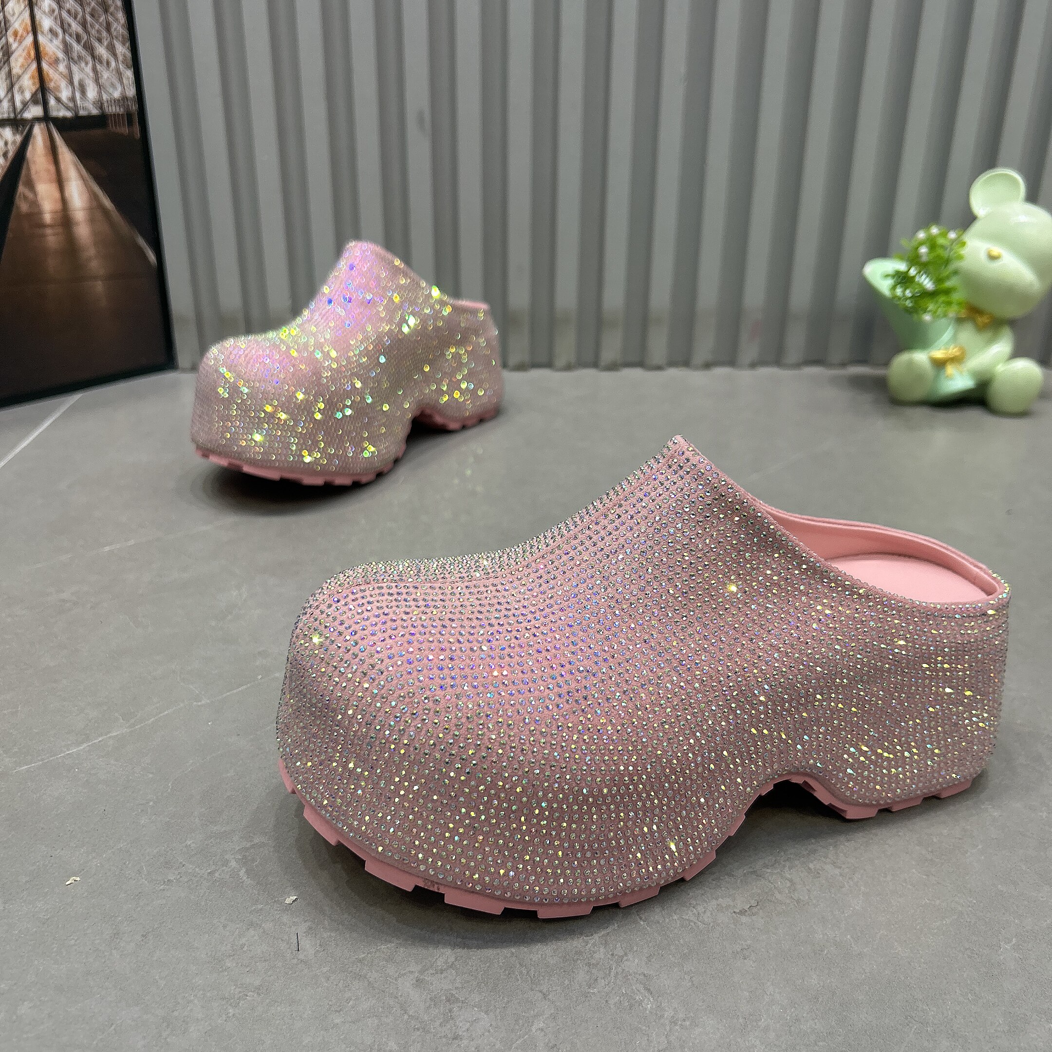 淘宝五星鞋业,爆闪满钻包头厚底穆勒鞋