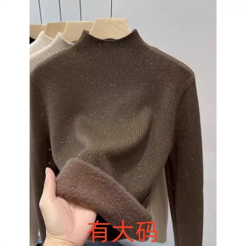 天猫天天特卖食品直营,加绒加厚亮丝一体高领毛衣秋冬季保暖大码内搭针织打底上衣绒毛