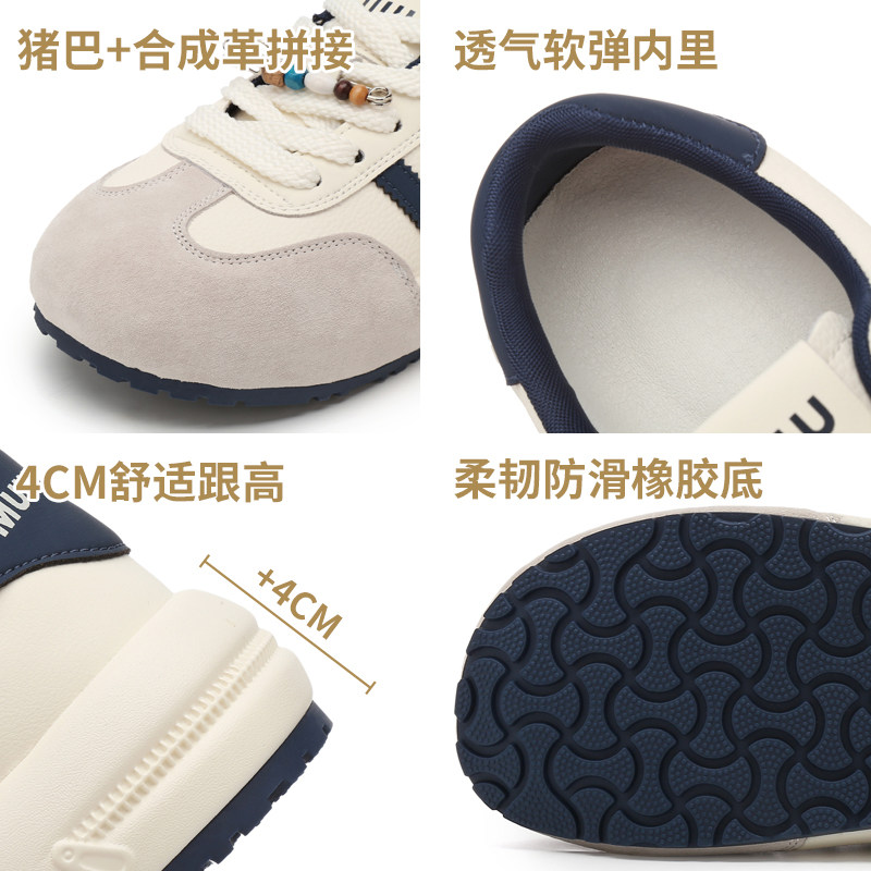 天猫1688官方工厂,真皮厚底德训鞋女2025春夏款百搭增高6CM板鞋透气休闲运动轻便鞋