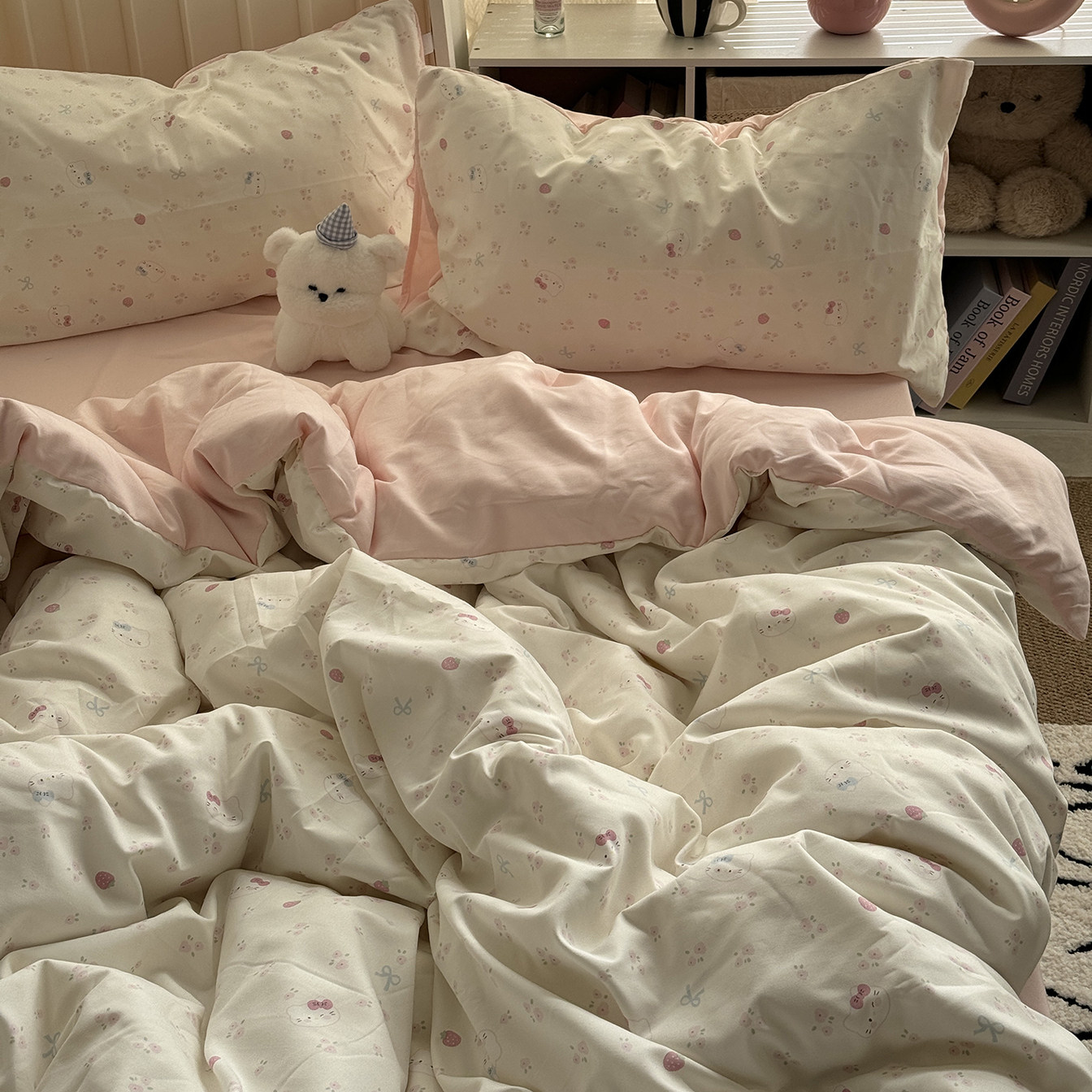 淘宝时光锦家居纺,奶油少女水洗棉四件套【赠运费险