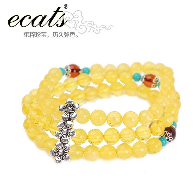 淘宝ecats柏妙珠宝,e.cats天然琥珀金包蜜金珀蜜蜡三圈,天然琥珀原石打磨圆珠 非压制合成