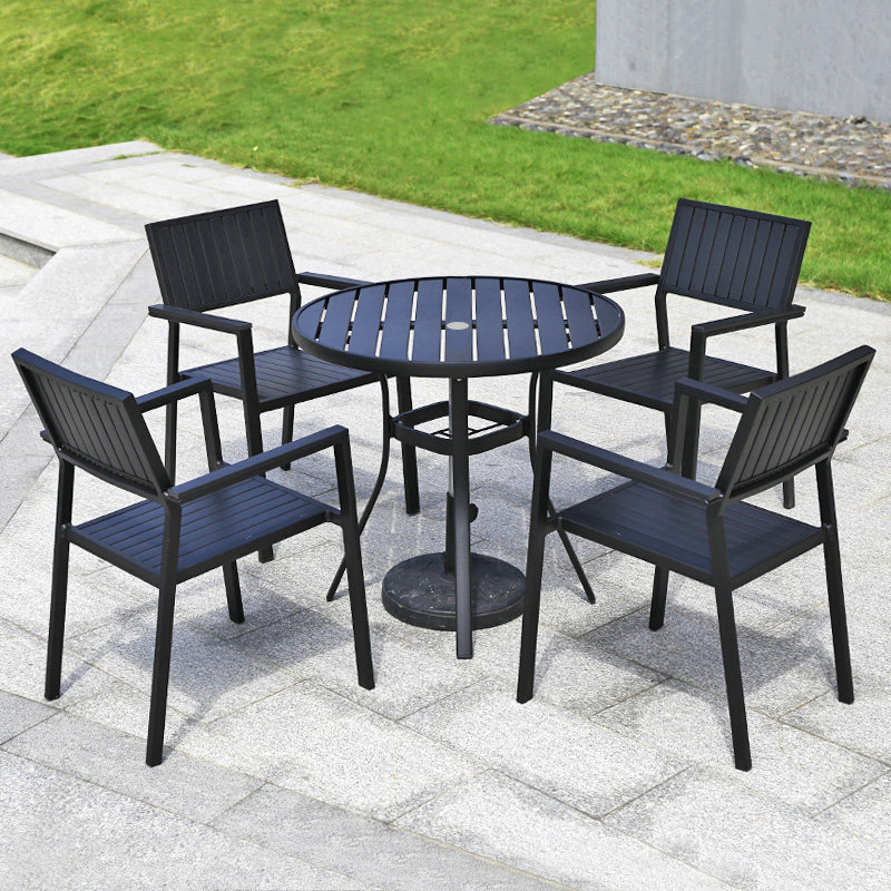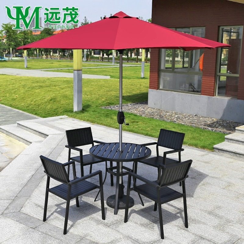 远茂网红北欧户外休闲桌椅塑木防腐木桌子户外遮阳伞桌椅组合茶桌